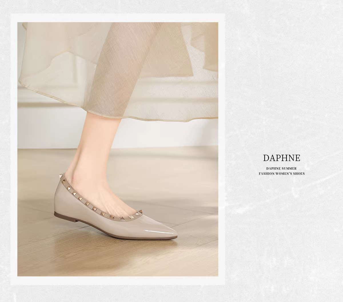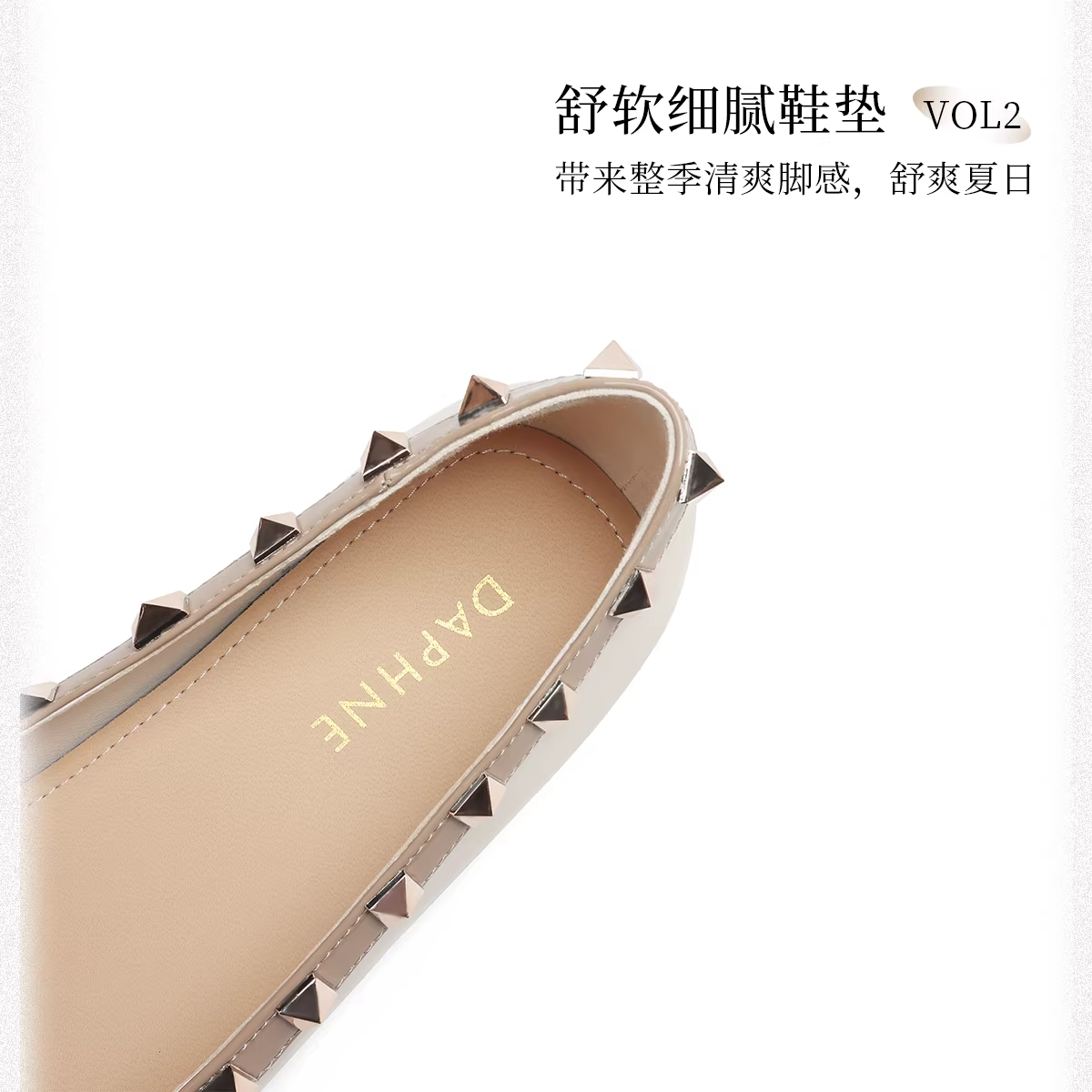 - Giày bệt mũi nhọn miệng nông Daphne dành cho nữ, mẫu mới hè 2025, màu nude, đính đinh tán, kiểu Mary Jane Pháp.