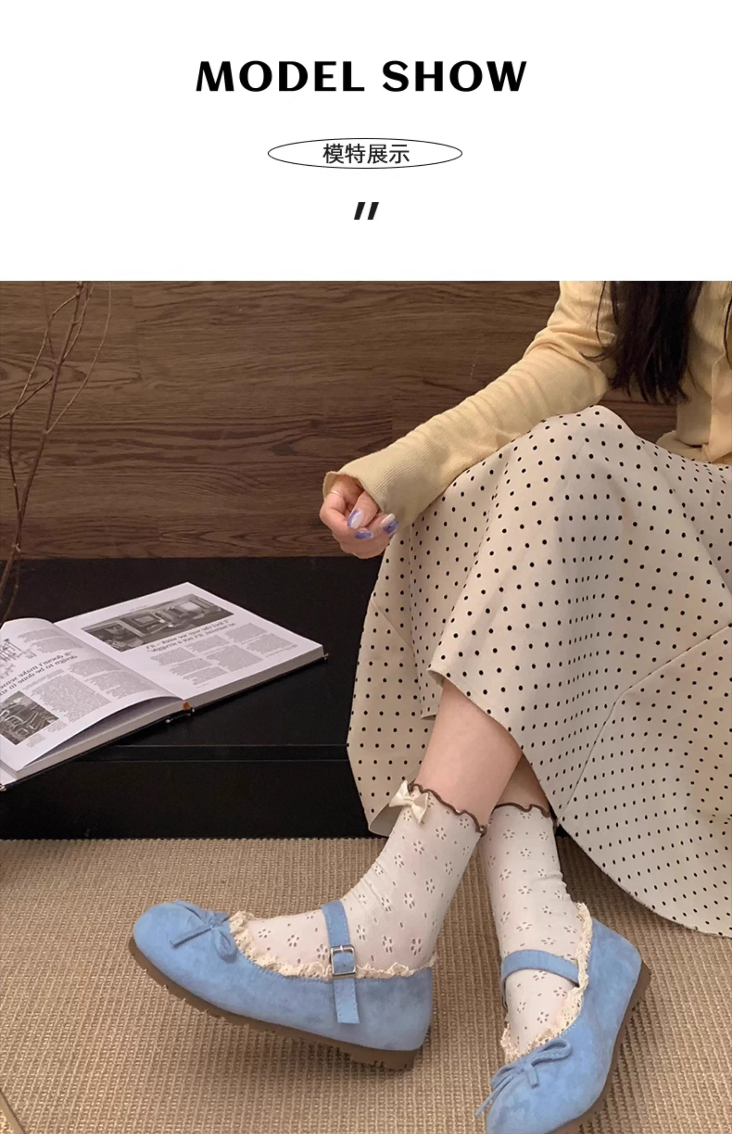 - Giày bệt mũi tròn kiểu ballet Pháp dành cho nữ, mẫu mới thu đông 2025, kiểu Mary Jane cổ điển, phối cùng chân váy