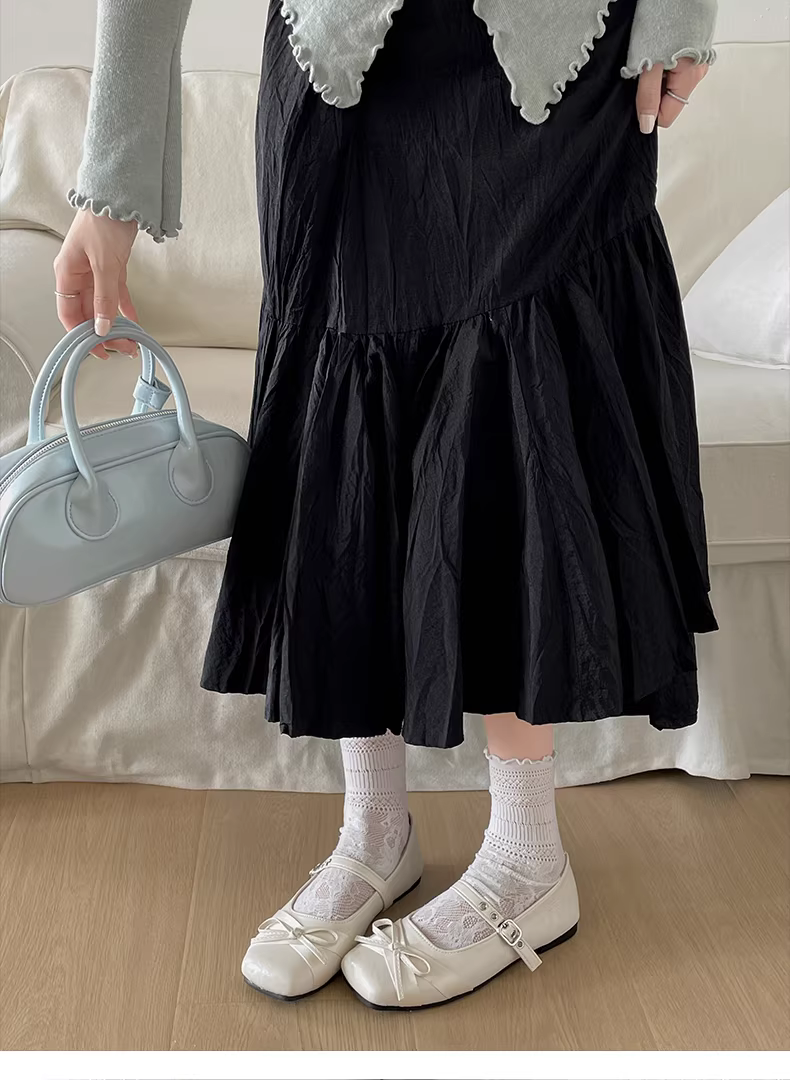 - Giày bệt mũi vuông kiểu ballet màu bạc dành cho nữ, mẫu mới thu đông 2025, kiểu Mary Jane cổ điển, phối cùng chân váy