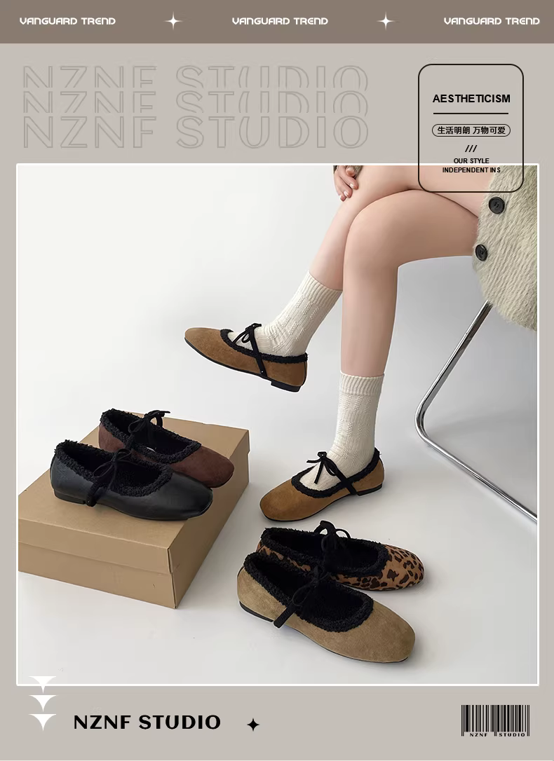 Giày bệt nhung đen cổ điển mũi vuông dành cho nữ, kiểu dáng thu đông 2025, phối chân váy, tăng chiều cao ẩn, kiểu Mary Jane