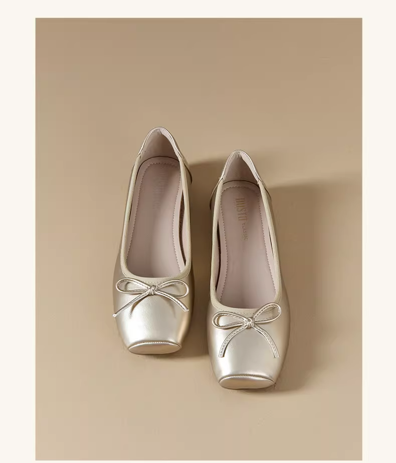 - Giày bệt nữ 2025 mẫu mới mùa thu, đế mềm, kiểu giày ba lê có nơ, thích hợp phối cùng chân váy, giày đế thấp.