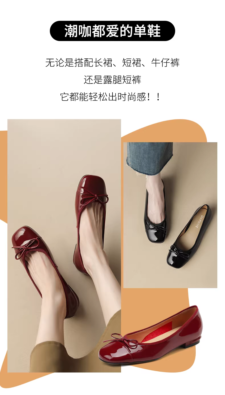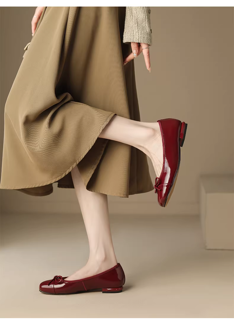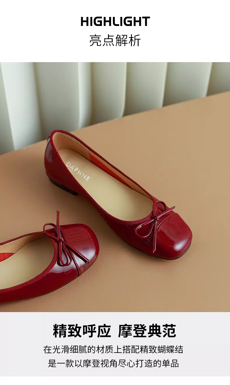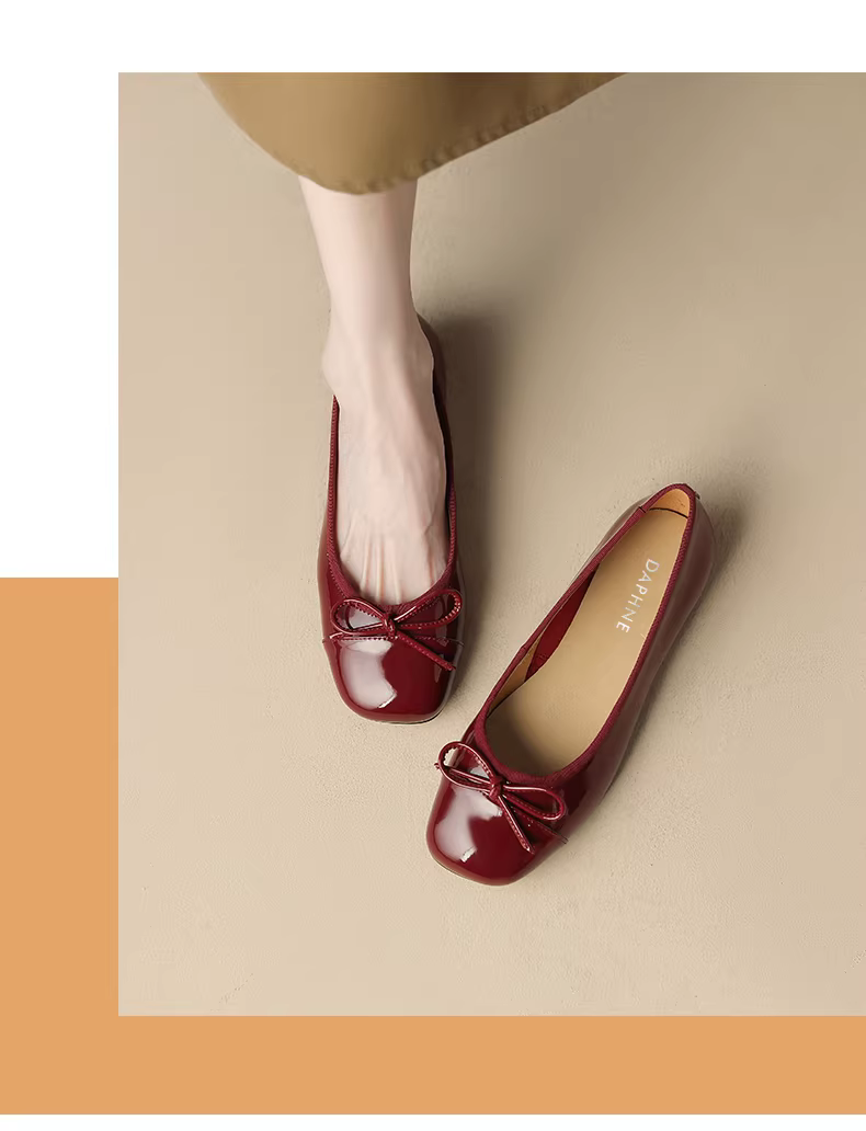 - Giày bệt nữ Daphne 2025, giày nữ mùa thu mới, kiểu Pháp, giày da đế bằng, giày lười màu đỏ, giày cưới mùa thu