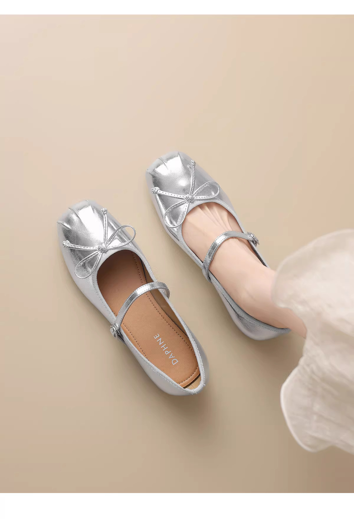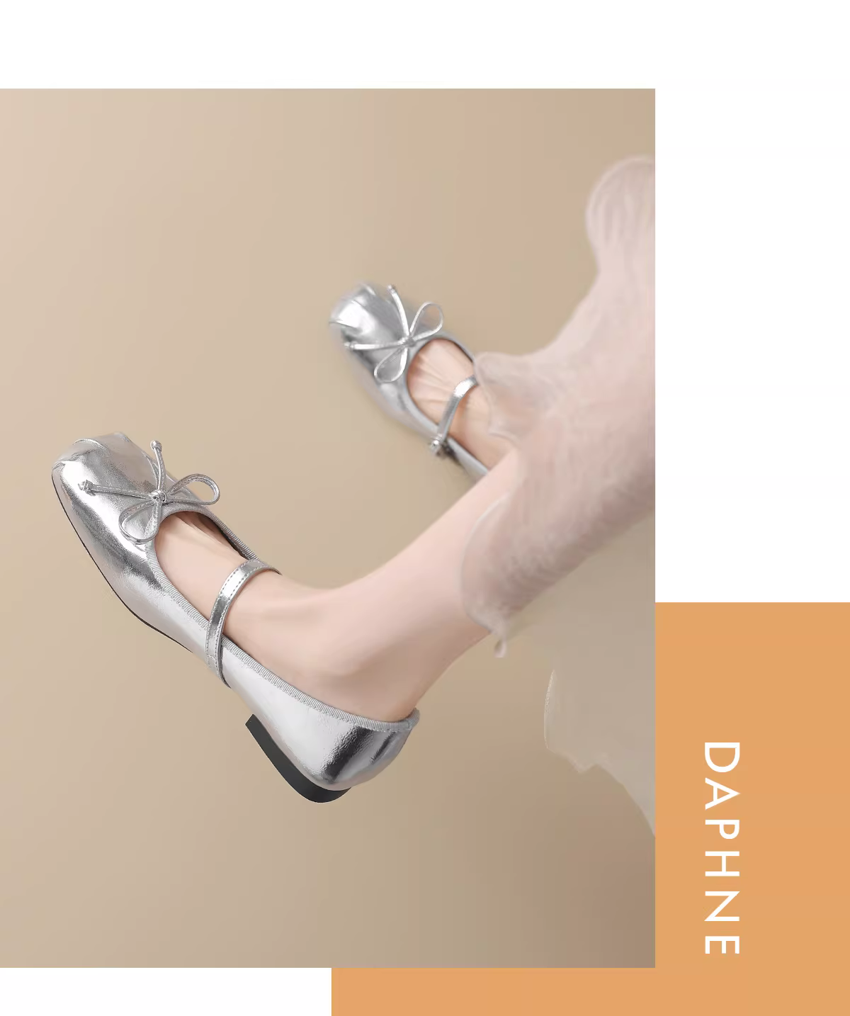 - Giày bệt nữ Daphne bạc mùa thu 2025 kiểu Pháp mới, giày bệt da nhỏ, giày Mary Jane, giày ba lê