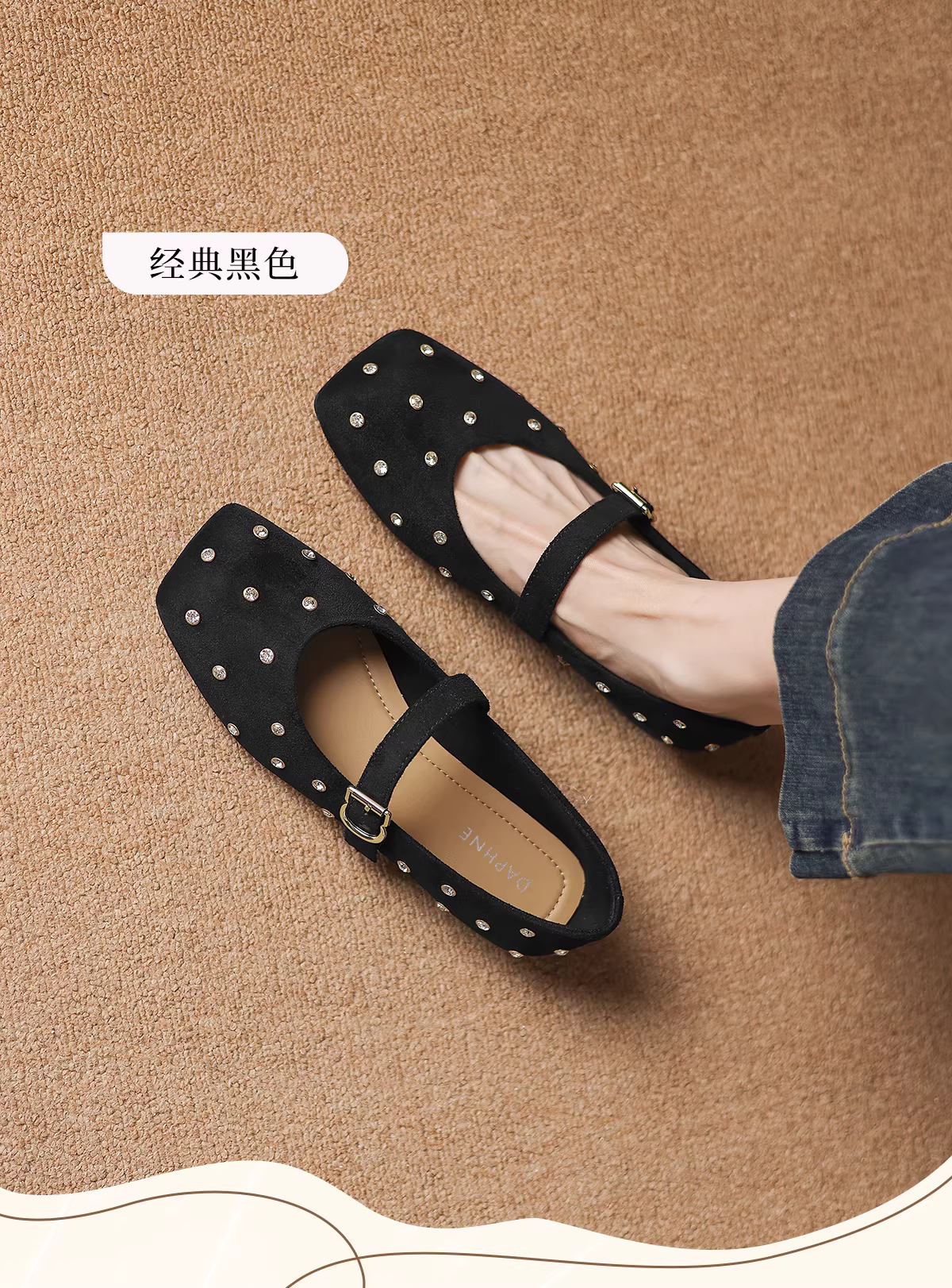- Giày bệt nữ Daphne đính đá, mẫu mới thu đông 2025, kiểu Mary Jane nông, cổ điển, thanh lịch, mũi vuông.