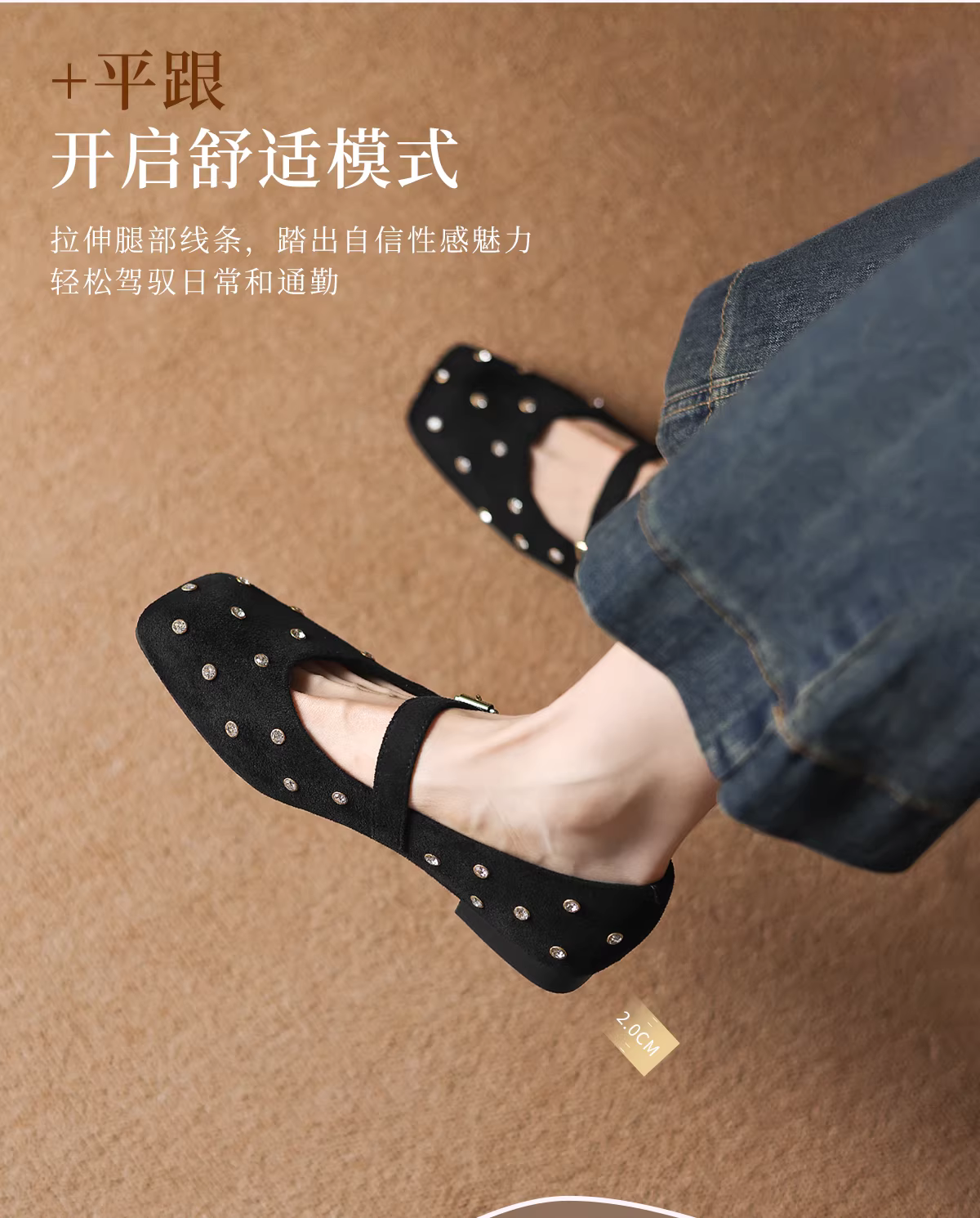 Giày bệt nữ Daphne đính đá, mẫu mới thu đông 2025, kiểu Mary Jane nông, cổ điển, thanh lịch, mũi vuông.
