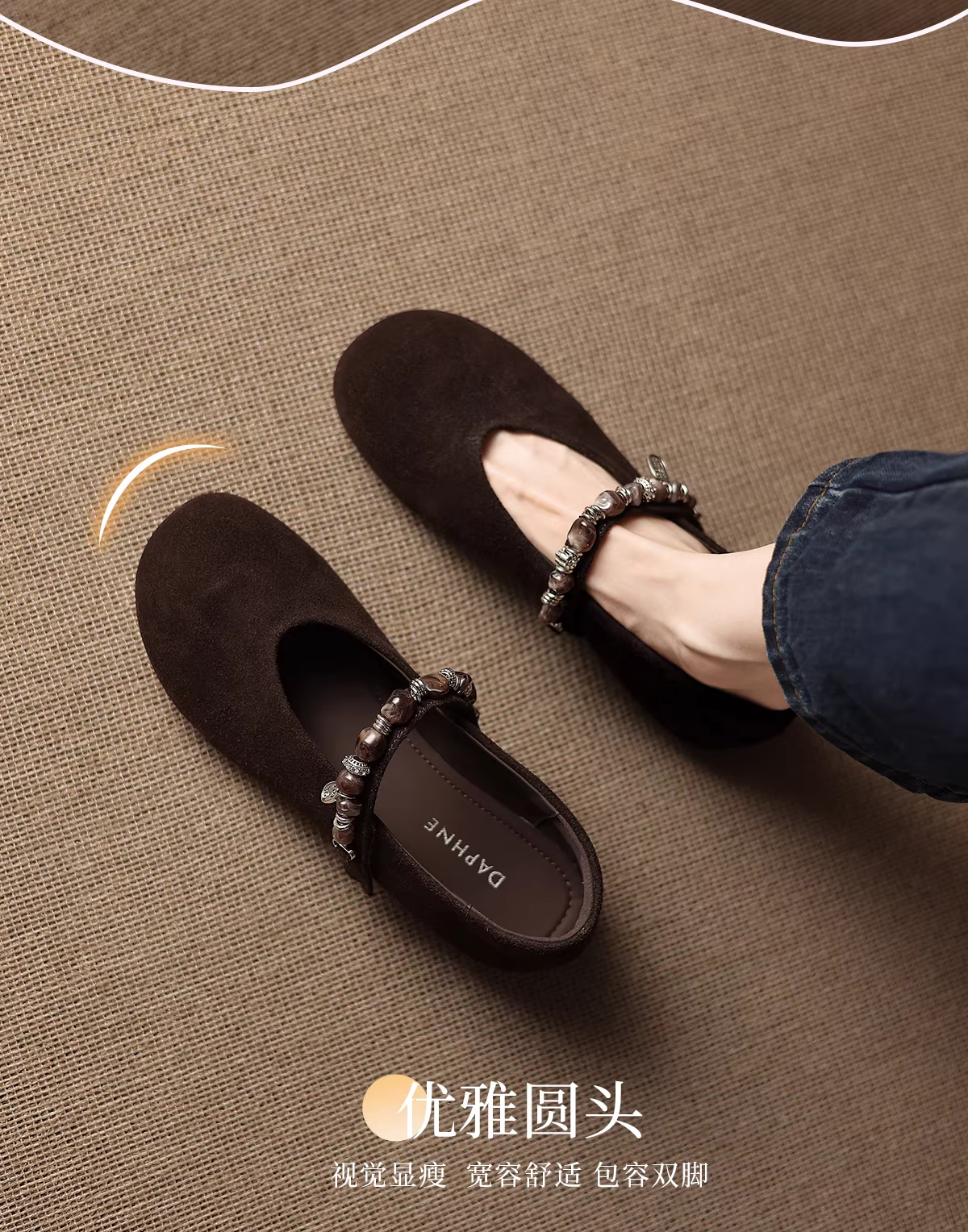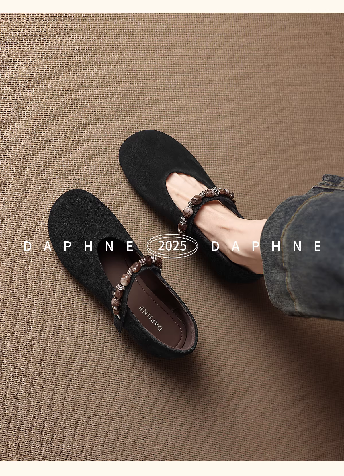 - Giày bệt nữ Daphne màu nâu kiểu Mary Jane Pháp cổ điển mùa thu mới 2025, giày da nhỏ