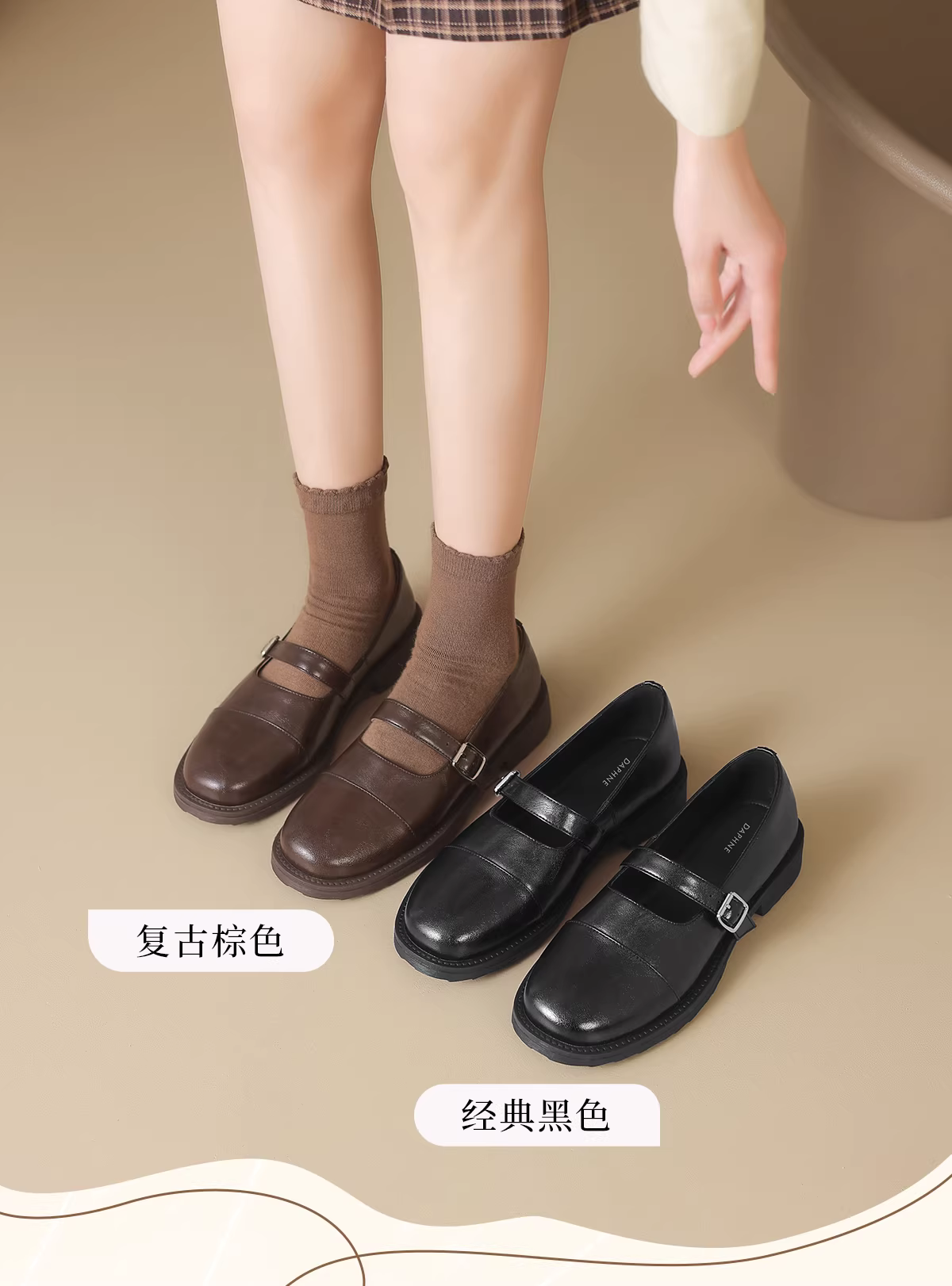 - Giày bệt nữ Daphne mùa thu đế bằng kiểu Mary Jane Pháp 2025 giày lười mới giày beanie giày da nhỏ