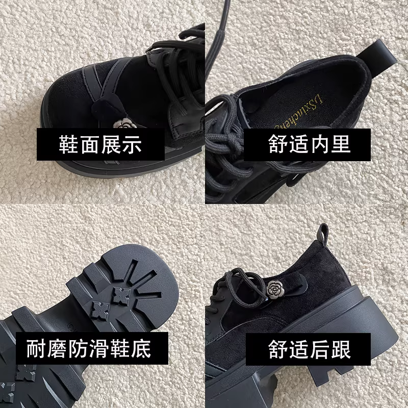 - Giày bệt nữ kiểu Pháp cổ điển đế dày, cổ sâu, mẫu mới thu 2025, đa năng, phối chân váy, tăng chiều cao, kiểu Mary Jane