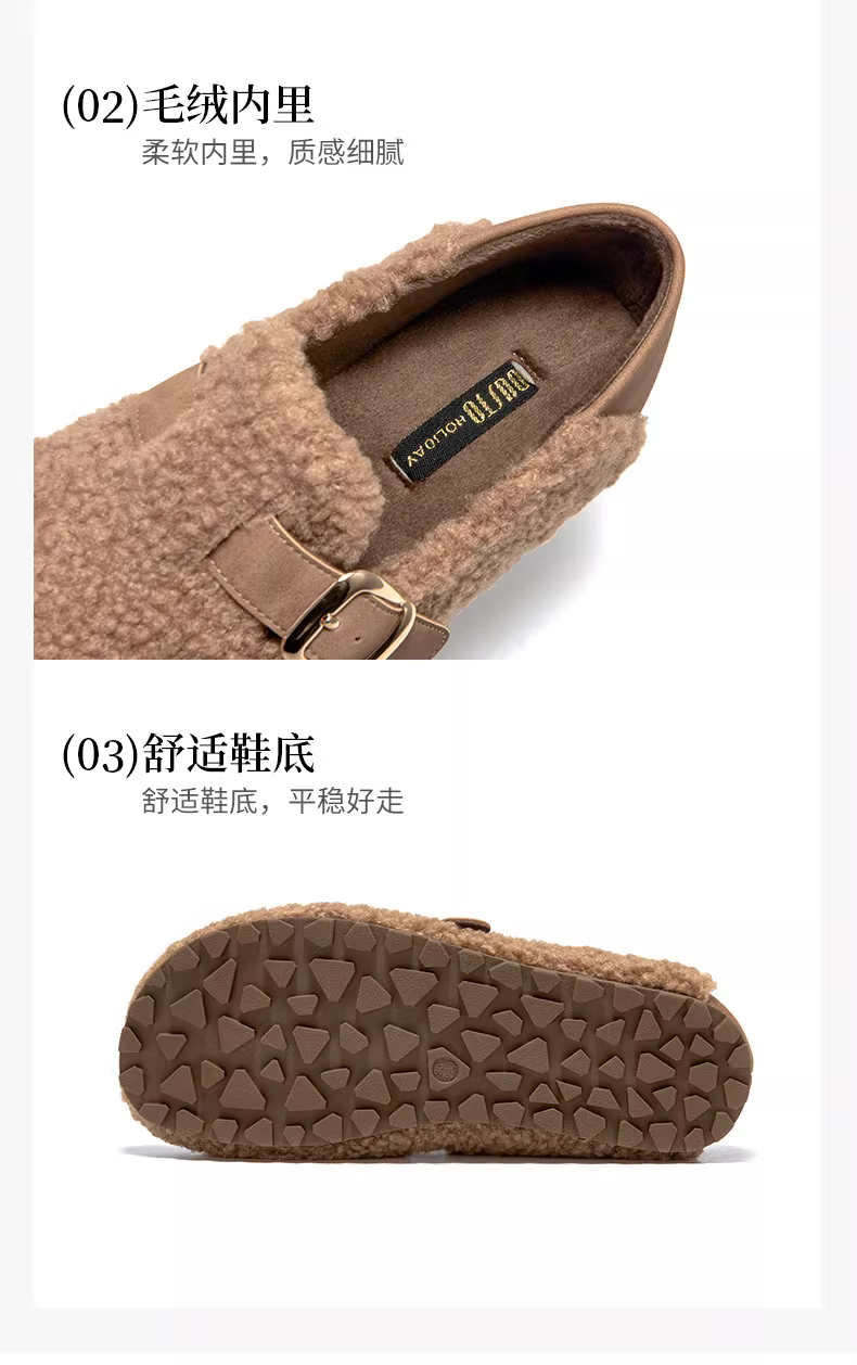 - Giày bệt nữ mùa đông 2025 kiểu mới, kiểu lười, màu đen, lót lông giữ ấm, thích hợp đi ngoài trời.