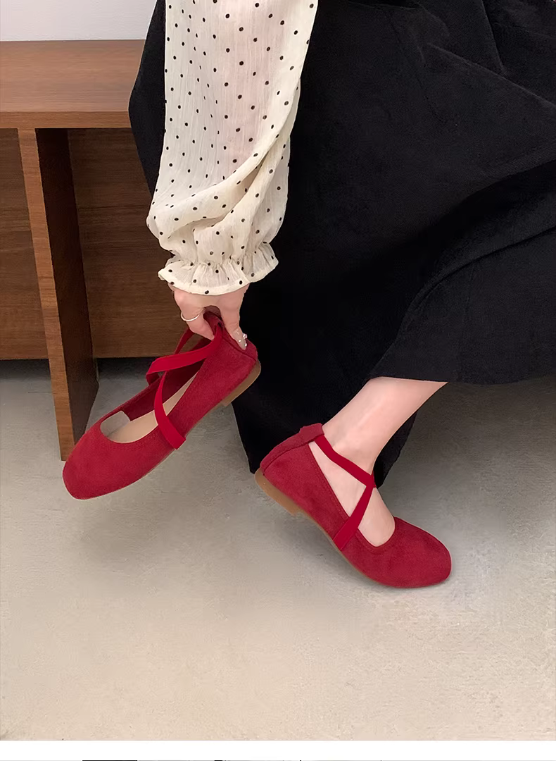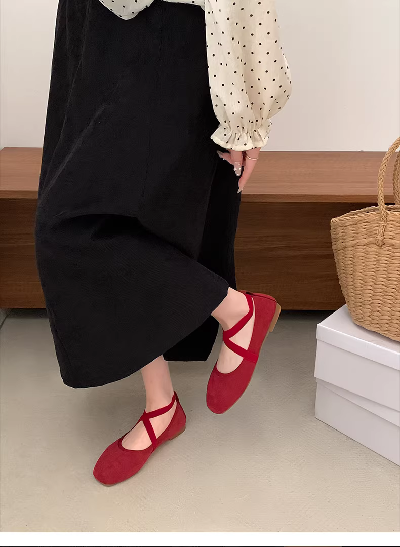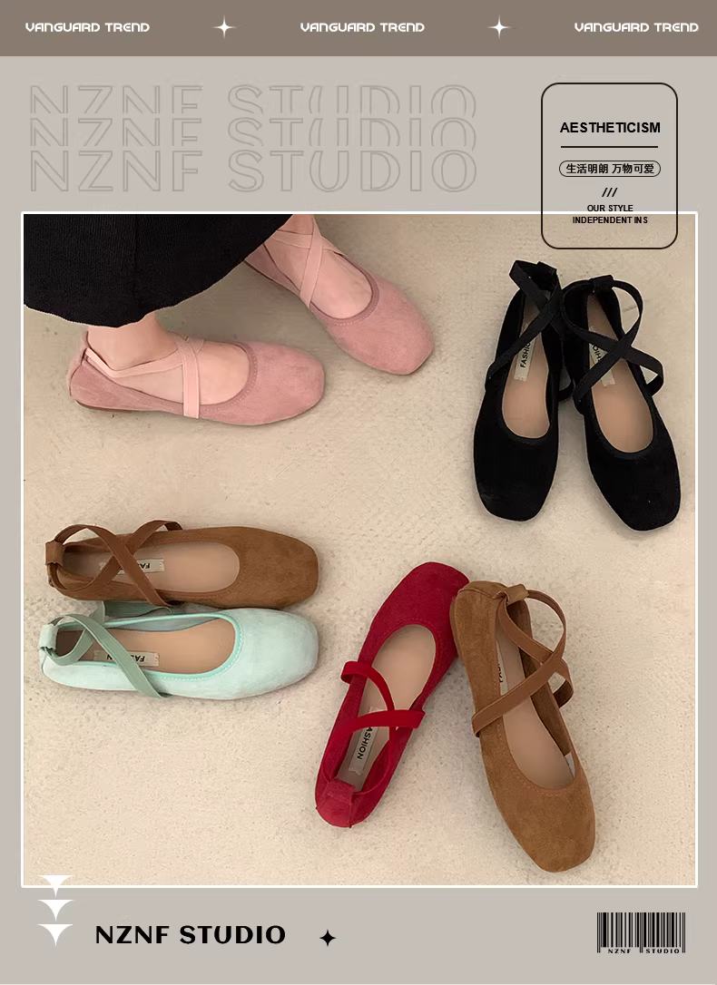 - Giày bệt nữ Nanzai Nanfang màu hồng kiểu mới mùa thu 2025, đế mềm, kiểu Mary Jane, phối cùng chân váy