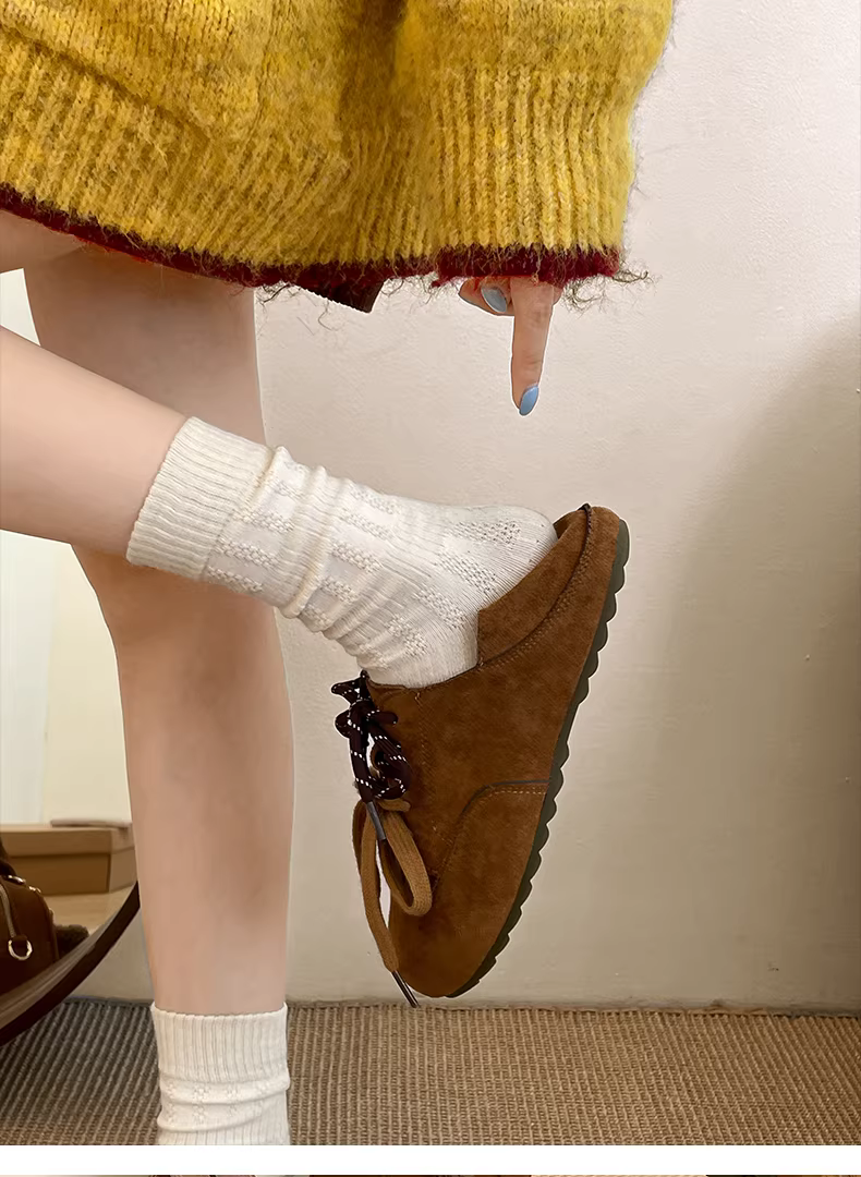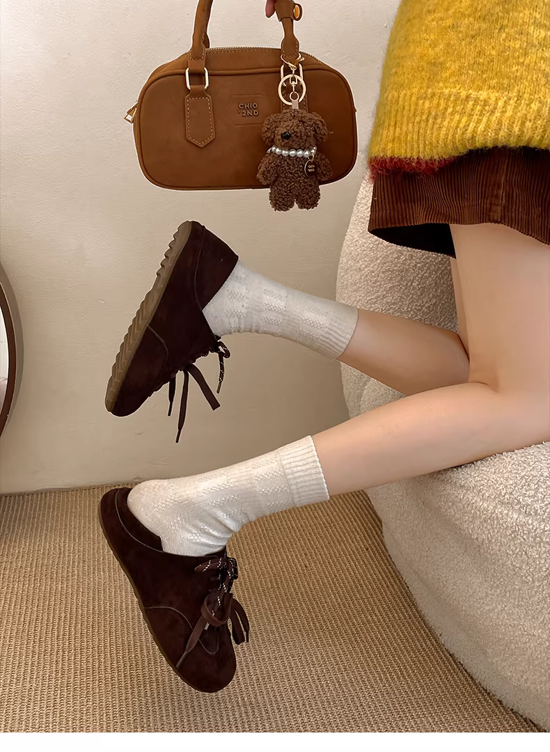 Giày Birkenstock đế bằng màu nâu cổ điển kiểu Pháp dành cho nữ, kiểu dáng thu đông 2025 mới, phối cùng chân váy và giày cotton đế mềm nhung.