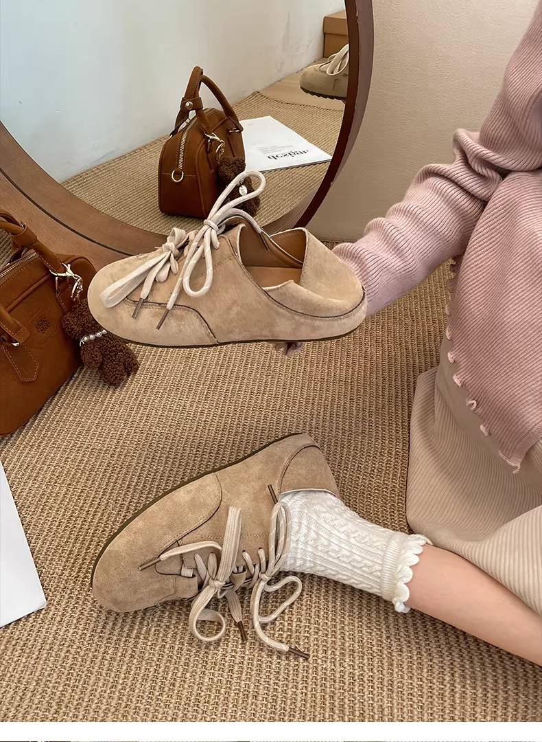 - Giày Birkenstock đế bằng màu nâu cổ điển kiểu Pháp dành cho nữ, kiểu dáng thu đông 2025 mới, phối cùng chân váy và giày cotton đế mềm nhung.