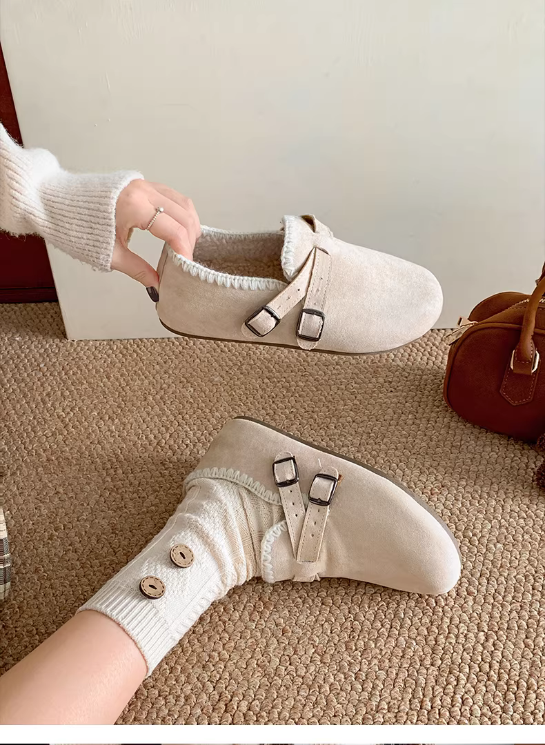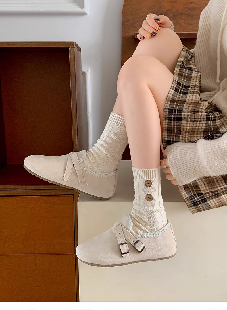 - Giày Birkenstock đế dày cổ điển màu trắng, lót lông cừu, dành cho nữ, mẫu mới thu đông 2025, đế mềm, giữ ấm.
