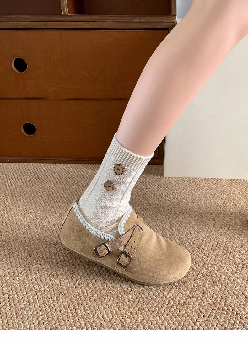 Giày Birkenstock đế dày cổ điển màu trắng, lót lông cừu, dành cho nữ, mẫu mới thu đông 2025, đế mềm, giữ ấm.