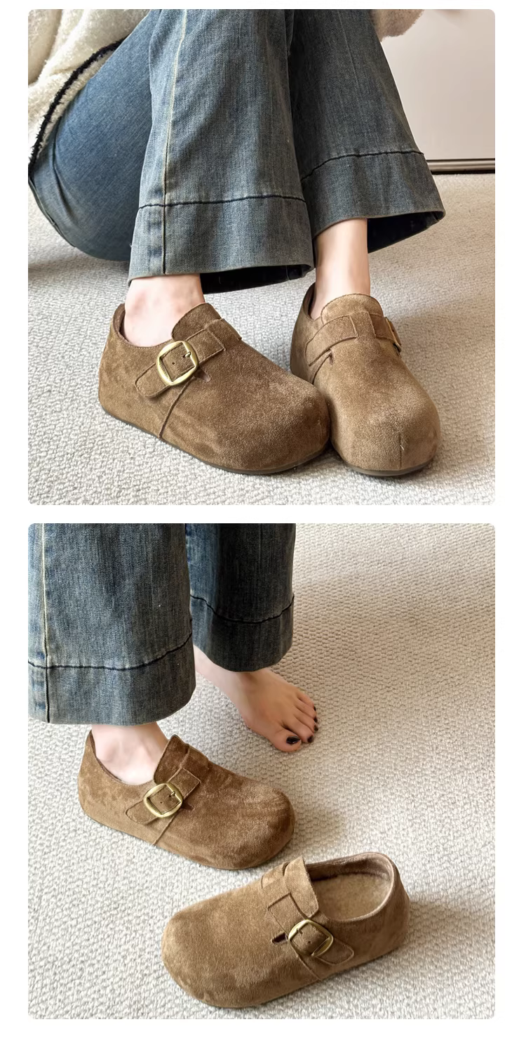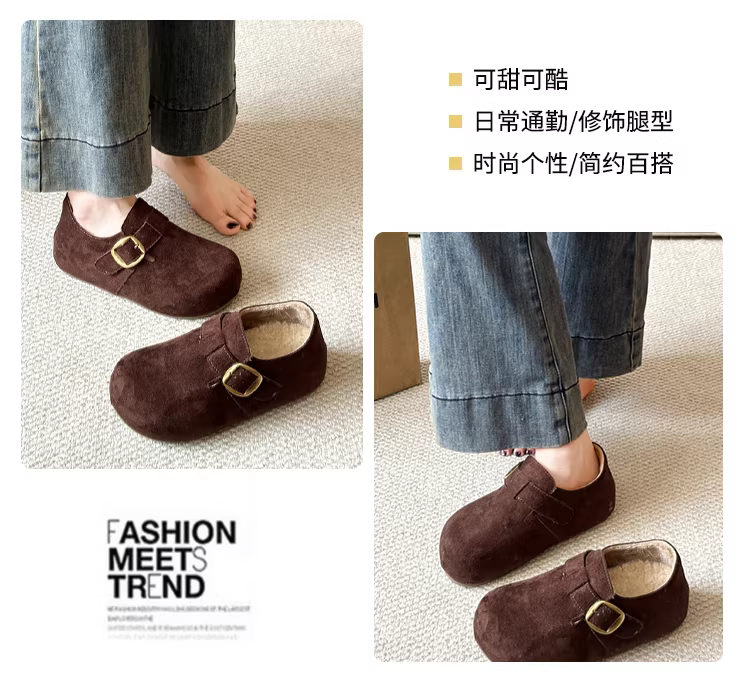 - Giày Birkenstock đế dày đế cao lót lông mềm mại kiểu retro dành cho nữ mùa thu đông 2025, giày bông giữ ấm