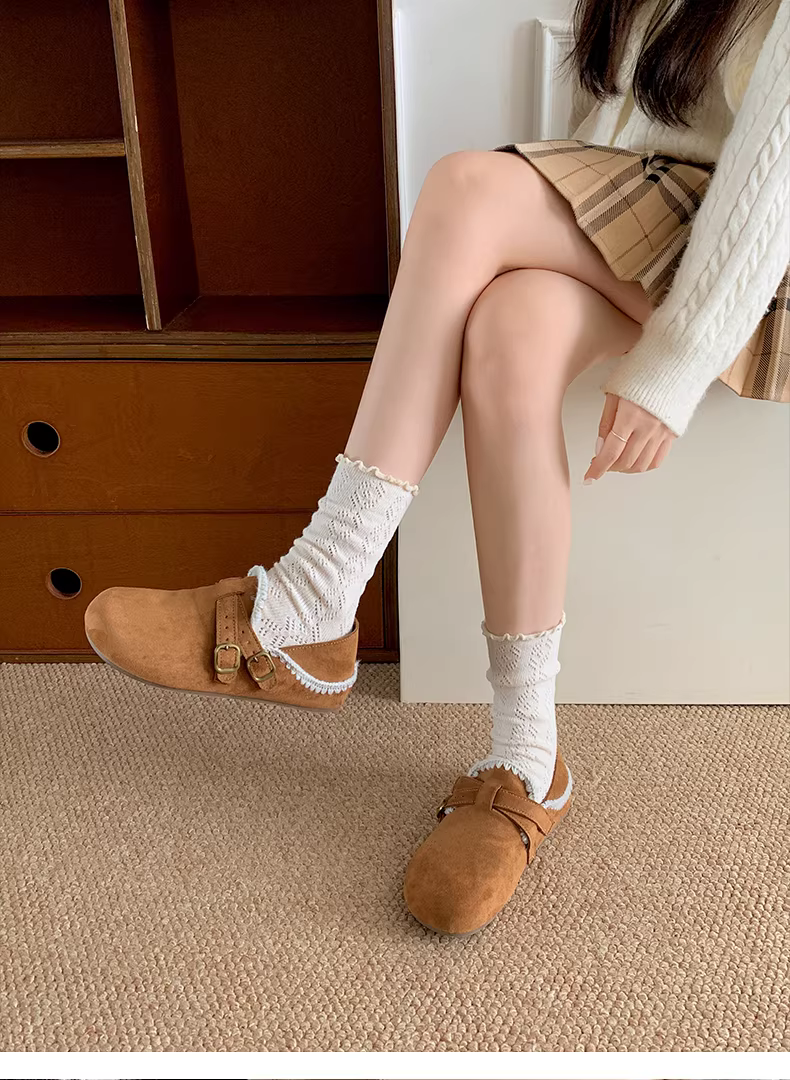 - Giày Birkenstock đế dày kiểu Pháp màu trắng dành cho nữ, mẫu thu đông 2025 mới, đa năng phối với chân váy, giày đơn.