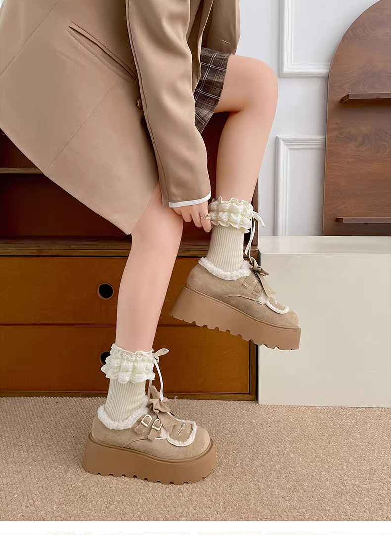 - Giày Birkenstock đế dày kiểu retro dành cho nữ mùa đông 2025, lót lông cừu giữ ấm, dày dặn, chống tuyết