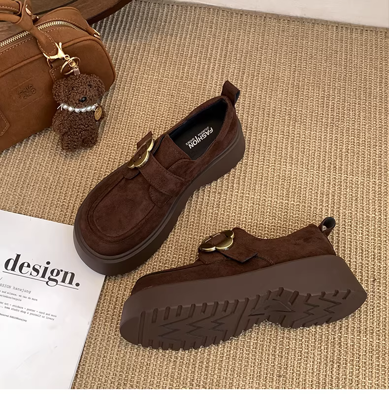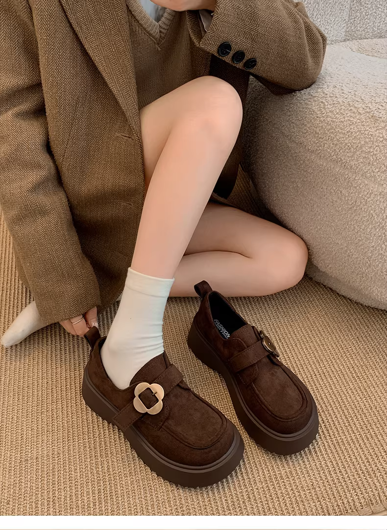 - Giày Birkenstock đế dày màu nâu cổ điển dành cho nữ, kiểu thu mới 2025, phối cùng chân váy, giày lười tăng chiều cao.