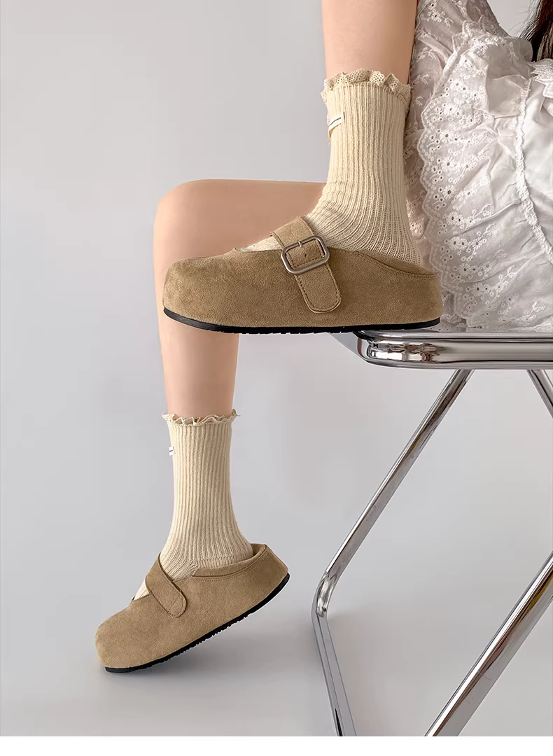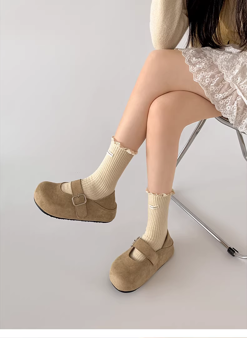 - Giày Birkenstock đế dày màu vàng cổ điển kiểu Pháp dành cho nữ, kiểu dáng thu đông 2025 mới, phối chân váy và giày Mary Jane hai kiểu mang.