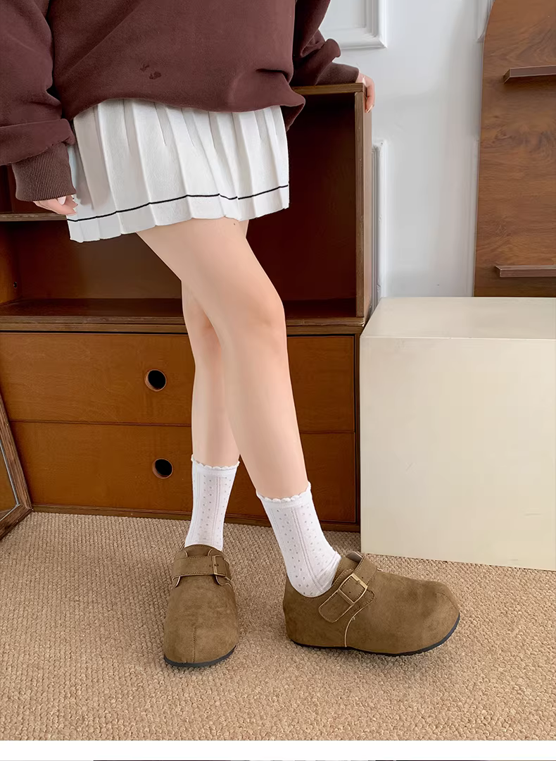 - Giày Birkenstock đế xuồng retro màu kaki dành cho nữ, mẫu mới thu 2025, đa năng, đế mềm, kiểu dáng sâu, dễ phối với chân váy