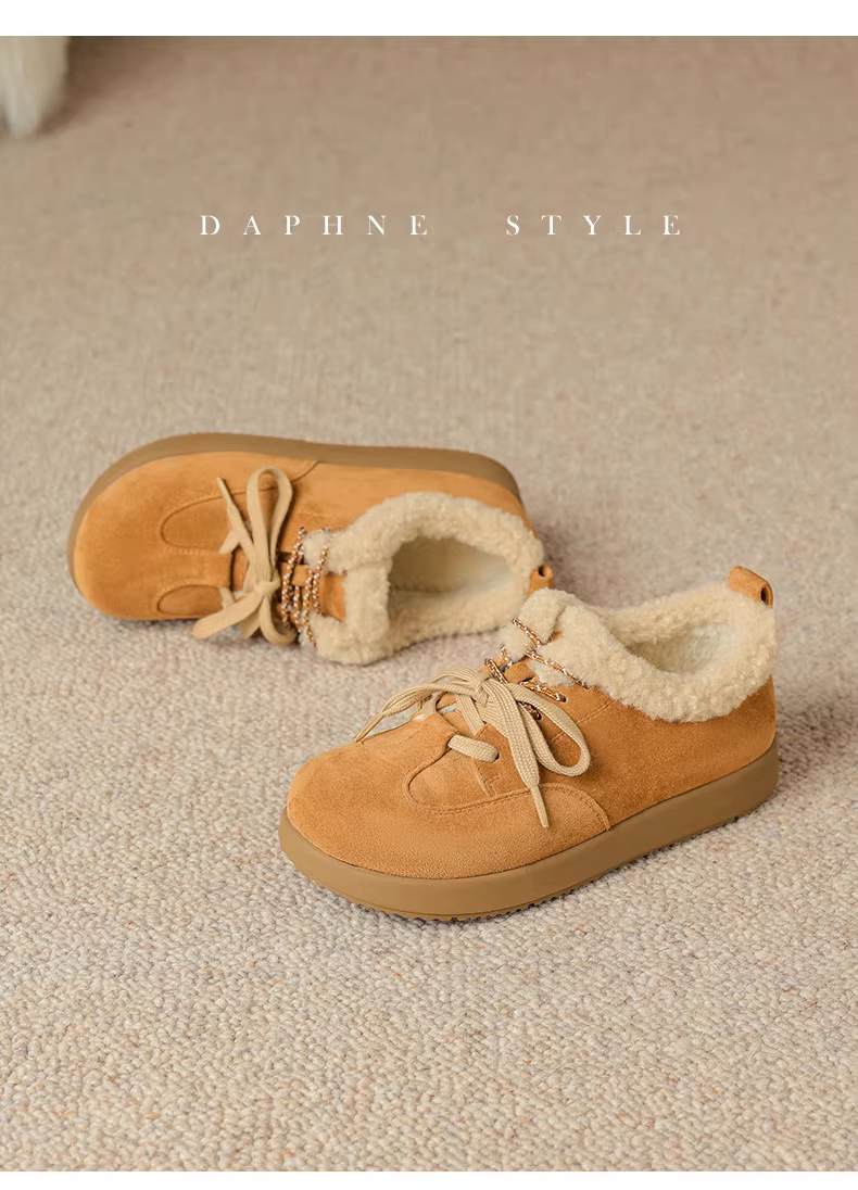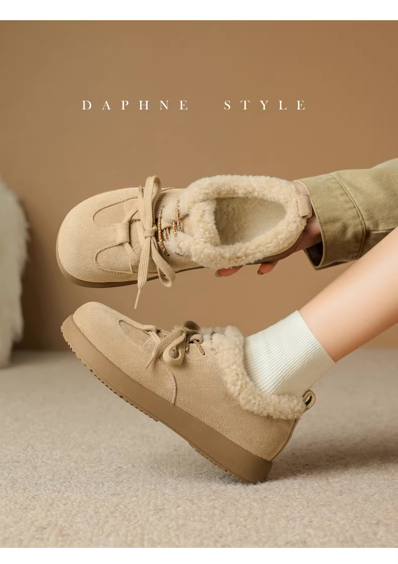 - Giày Birkenstock lót lông Daphne dành cho nữ, giày bốt giữ ấm mùa đông 2025 mới, giày bông lông dày đế dày kiểu cổ điển.