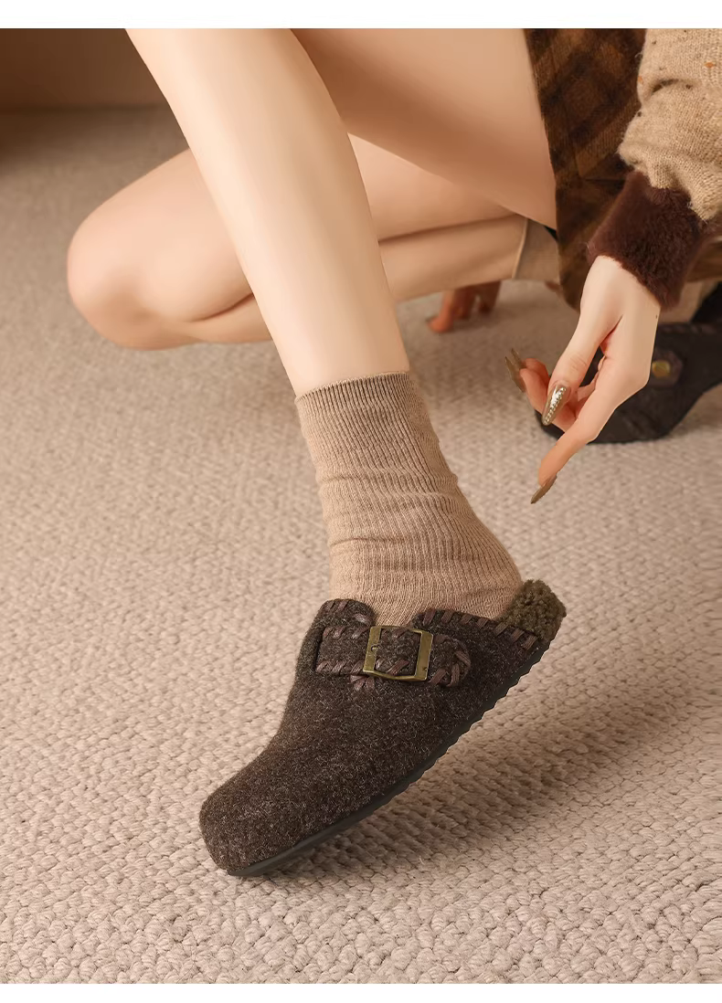 - Giày Birkenstock lót lông Daphne dành cho nữ, mùa đông 2025, kiểu mới đế dày giữ ấm, kiểu lười đóng mũi, giày lông mềm.
