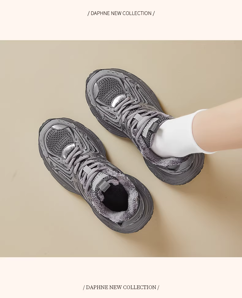 - Giày bố đế dày Daphne dành cho nữ 2025, giày mùa đông mới lót lông cừu giữ ấm, giày cotton thể thao thường ngày, ủng tuyết