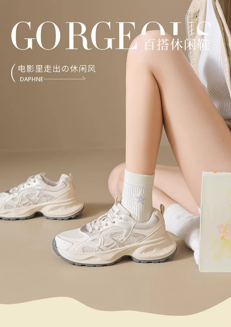 Giày bố đế dày Daphne dành cho nữ 2026 mùa xuân mới siêu phổ biến giày thể thao màu trắng thoải mái thoáng khí giày thể thao thông thường