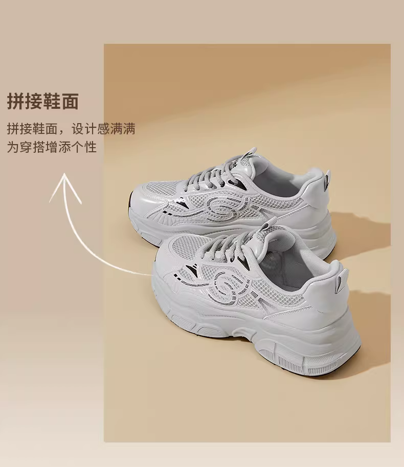 Giày bố đế dày màu trắng dành cho nữ, giày thu đông 2025 mới, đa năng, nhẹ, kiểu dáng thể thao, giày thường ngày.