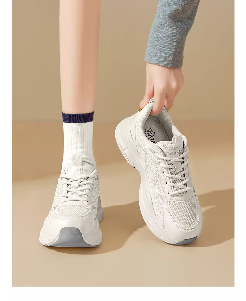 - Giày bố đế dày màu trắng dành cho nữ, giày thu đông 2025 mới, đa năng, nhẹ, kiểu dáng thể thao, giày thường ngày.