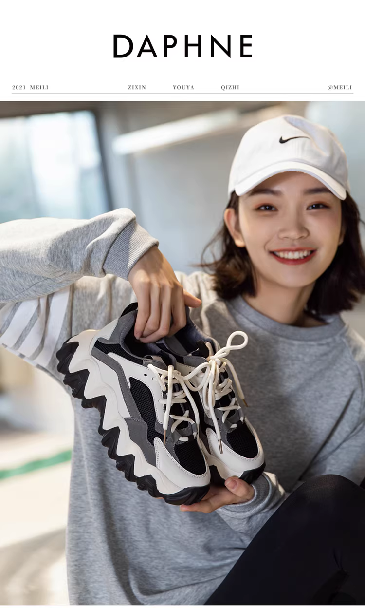 - Giày bố đế dày tăng chiều cao Daphne dành cho nữ, giày nữ mới mùa thu 2025, giày panda giúp chân trông nhỏ hơn, giày thể thao nữ.