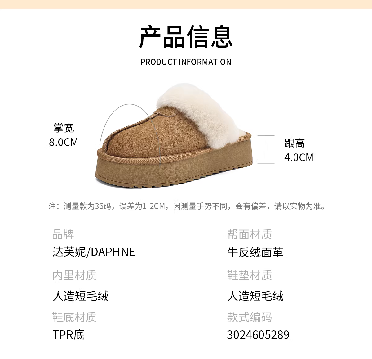 - Giày bông da thật Daphne 2025 mới dành cho nữ mùa đông ấm áp, kiểu lười, mũi kín, kiểu ủng tuyết