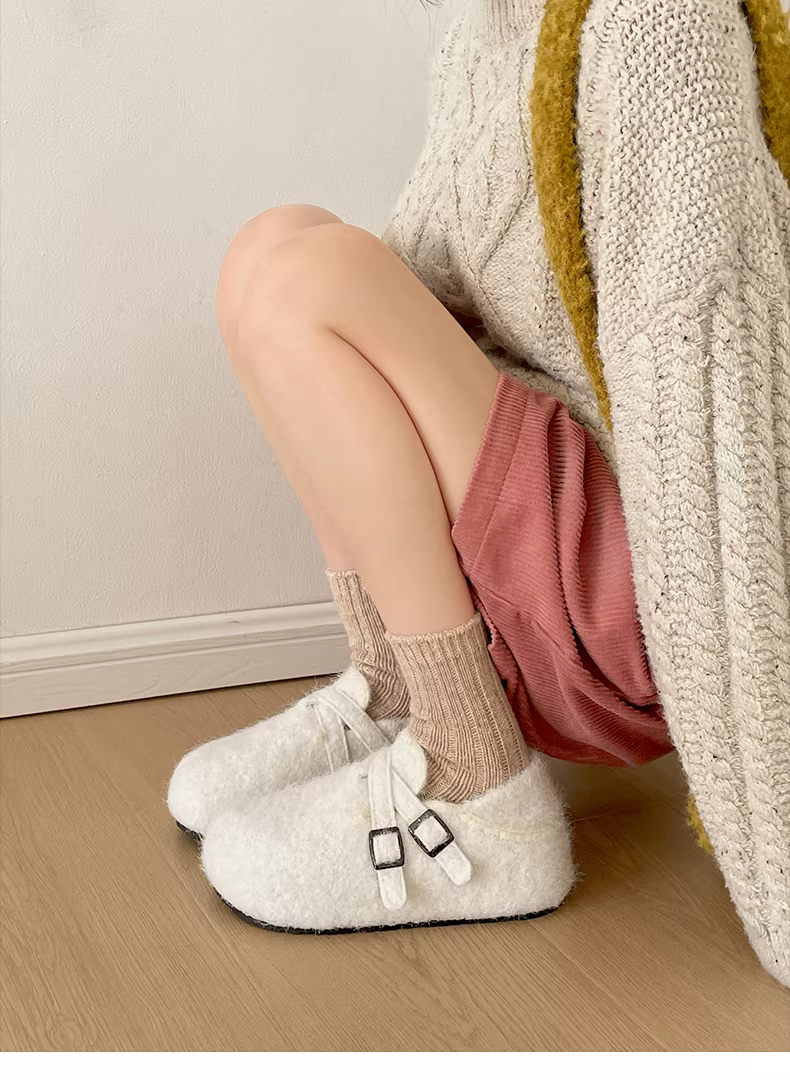 Giày bông dày đế cao cổ điển Nanzai Southern Retro dành cho nữ, mẫu mới mùa đông 2025, giữ ấm, kiểu Birkenstock.