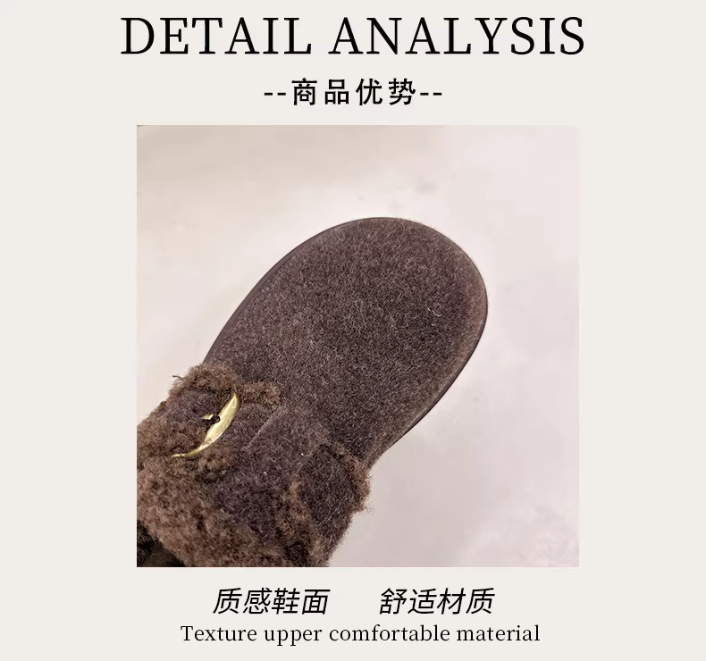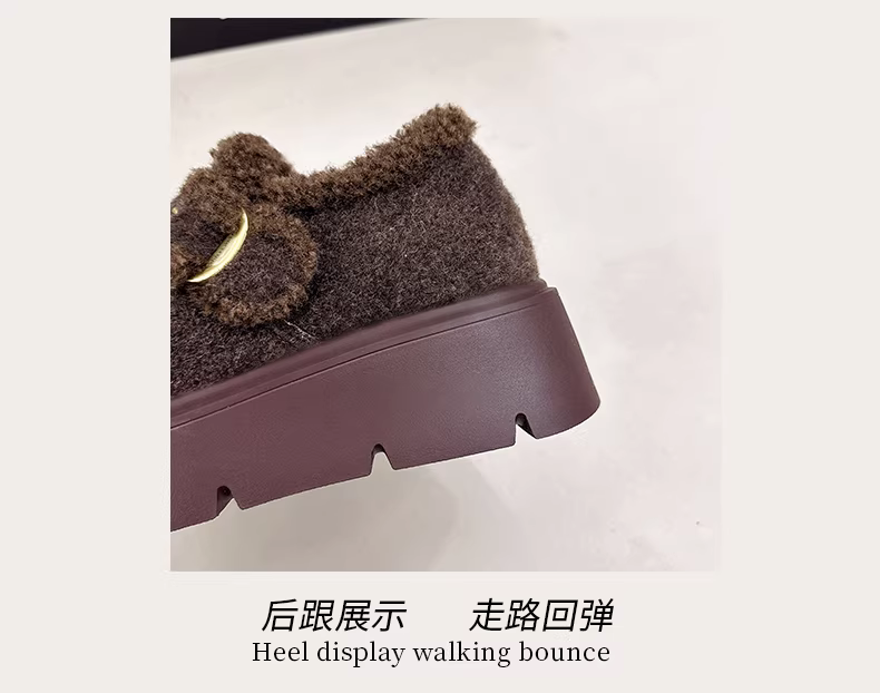 - Giày bông giữ ấm đế dày lót lông màu xám retro dành cho nữ mùa đông 2025 kiểu Birkenstock mới tăng chiều cao