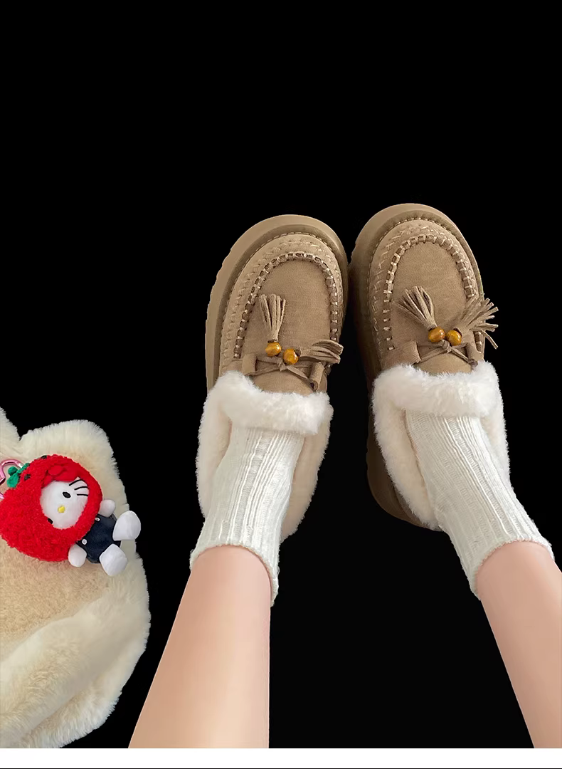 - Giày bông giữ ấm đế dày phong cách retro Nam Trung Quốc dành cho nữ 2025, giày mùa đông dày dặn kiểu Birkenstock