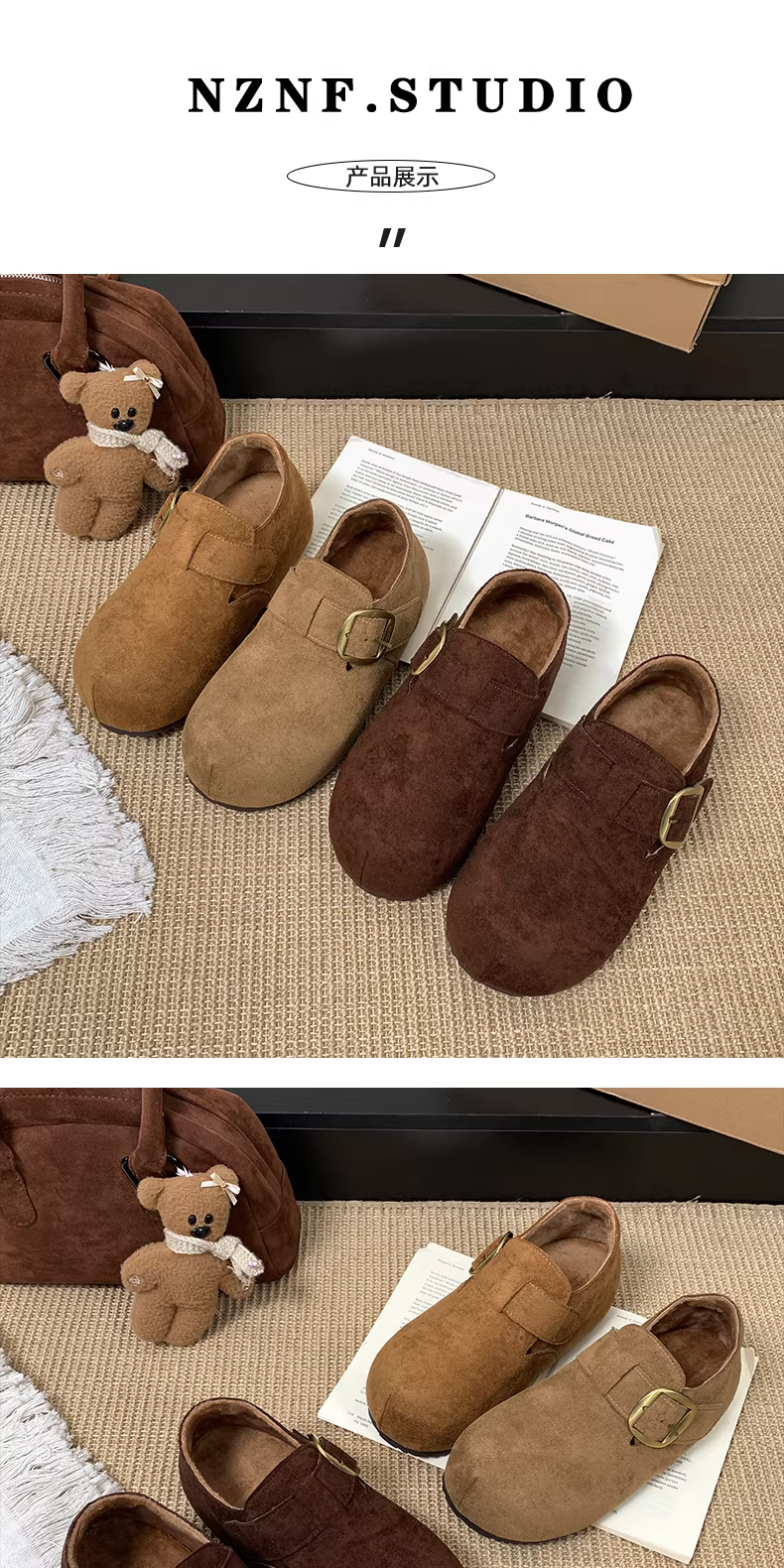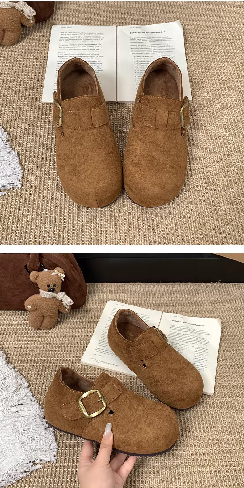 - Giày bông giữ ấm đế dày tăng chiều cao kiểu cổ điển Nam Trung Quốc dành cho nữ 2025 Mẫu mới Thu Đông lót lông dày kiểu Birkenstock