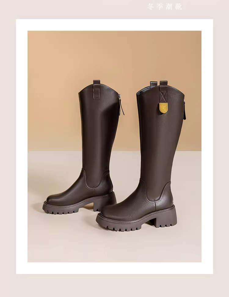 Giày bốt cao cổ Dadong dành cho nữ 2025, mẫu mới thu đông, lót lông cừu, đế dày, bốt dài, mẫu bốt dài thịnh hành năm nay