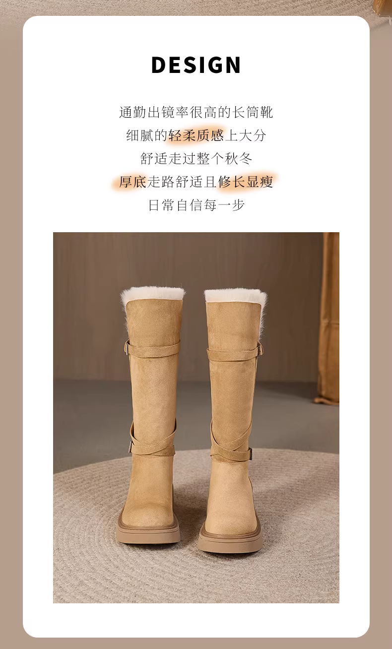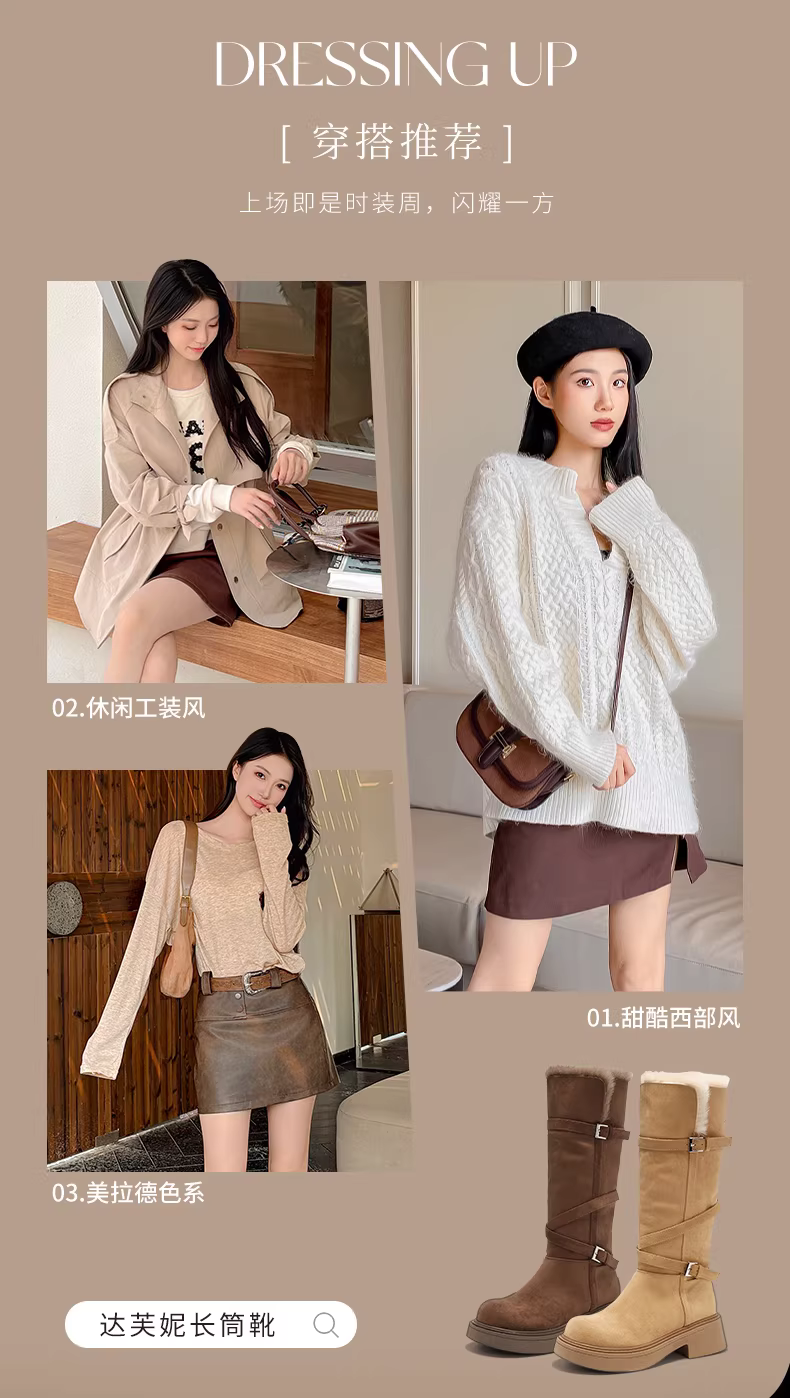- Giày bốt cao cổ Daphne dành cho nữ, kiểu mới mùa đông 2025, đế dày, kiểu dáng hai trong một, lót lông cừu, dày dặn, giữ ấm.