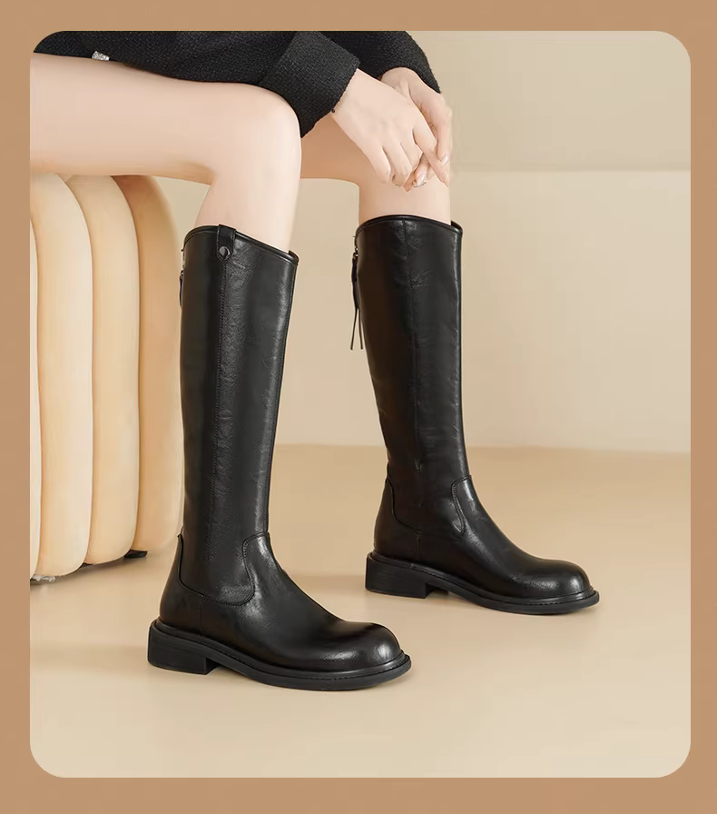 - Giày bốt cao cổ Daphne kiểu V dành cho nữ, mẫu mới thu đông 2025, màu nâu, kiểu cổ điển, phong cách cưỡi ngựa