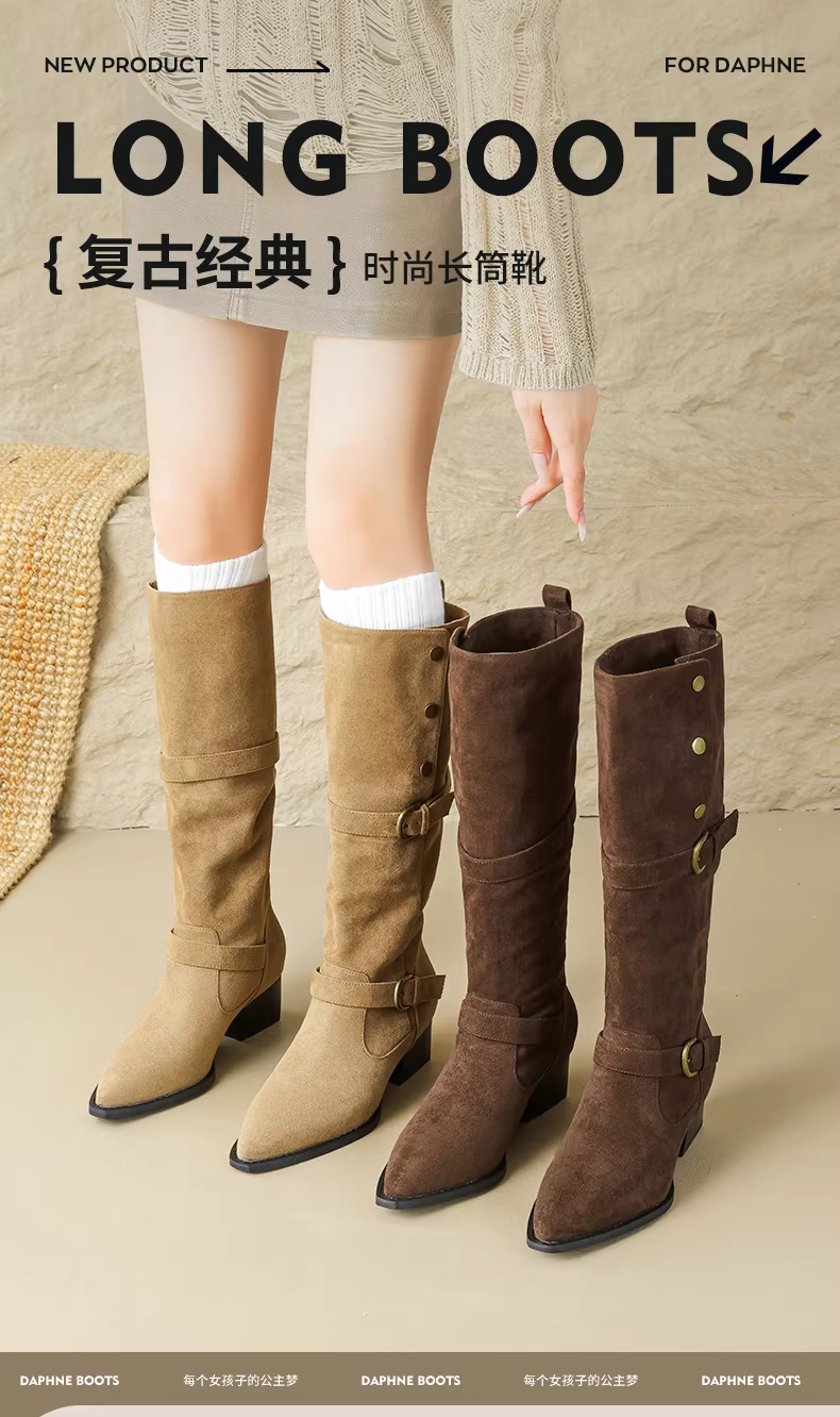 - Giày bốt cao cổ Daphne Maillard dành cho nữ, kiểu mới mùa thu đông 2025, phong cách cao bồi miền Tây, mũi nhọn, kiểu dáng xếp lớp.