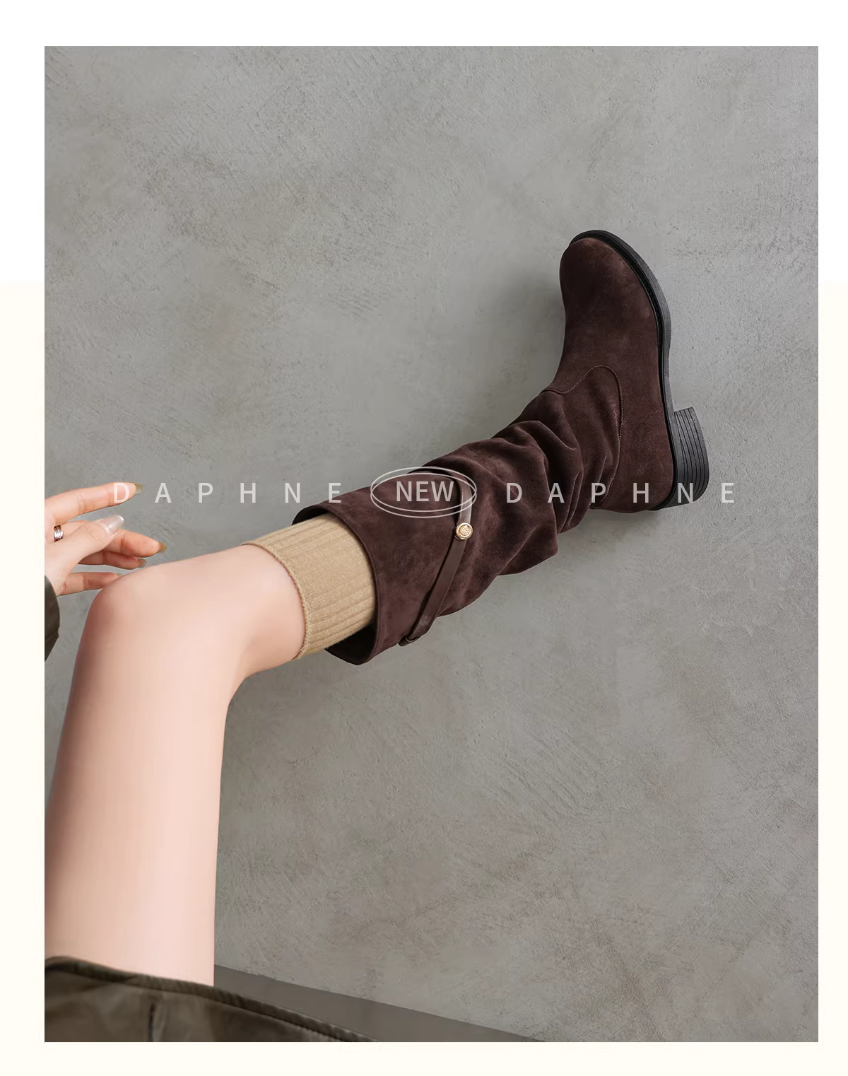 Giày bốt cao cổ Daphne nữ, kiểu mới mùa đông 2025, kiểu Melard, màu nâu, kiểu cao bồi miền Tây.
