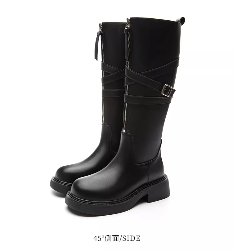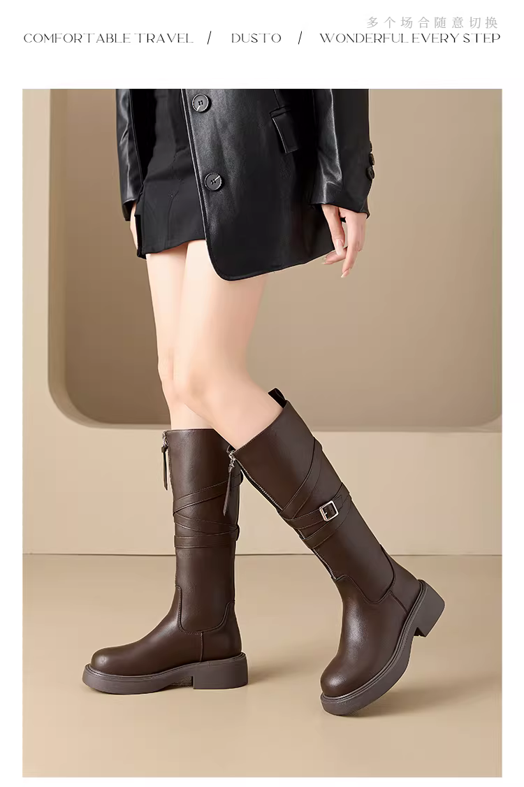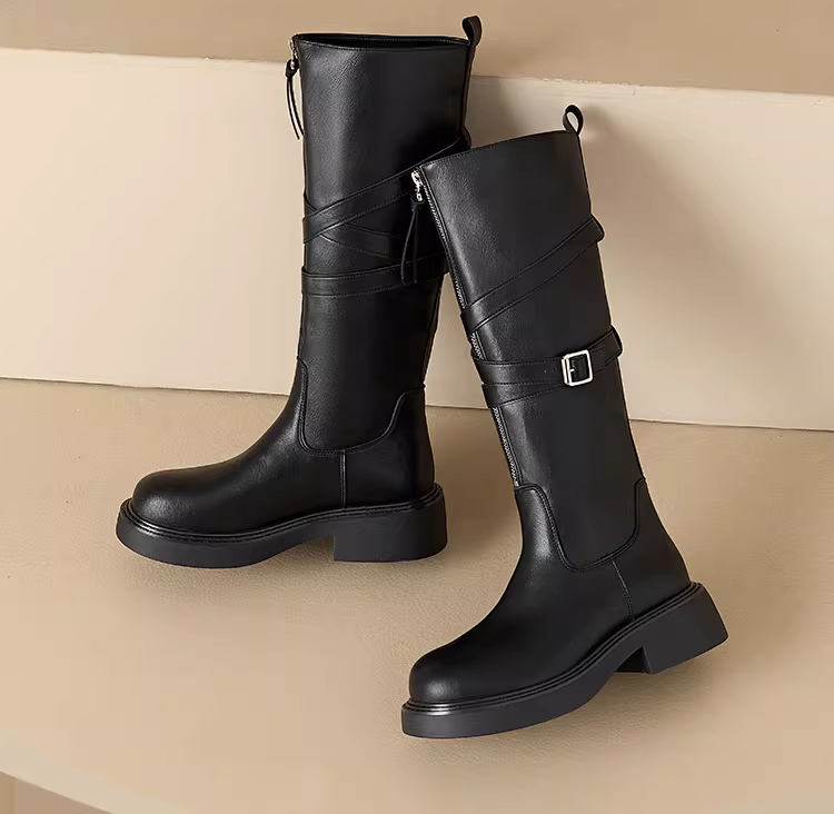 - Giày bốt cao cổ đế dày Dadong dành cho nữ 2025, mẫu mới thu đông, màu đen, kiểu cổ điển, phong cách hiệp sĩ, rất thời trang