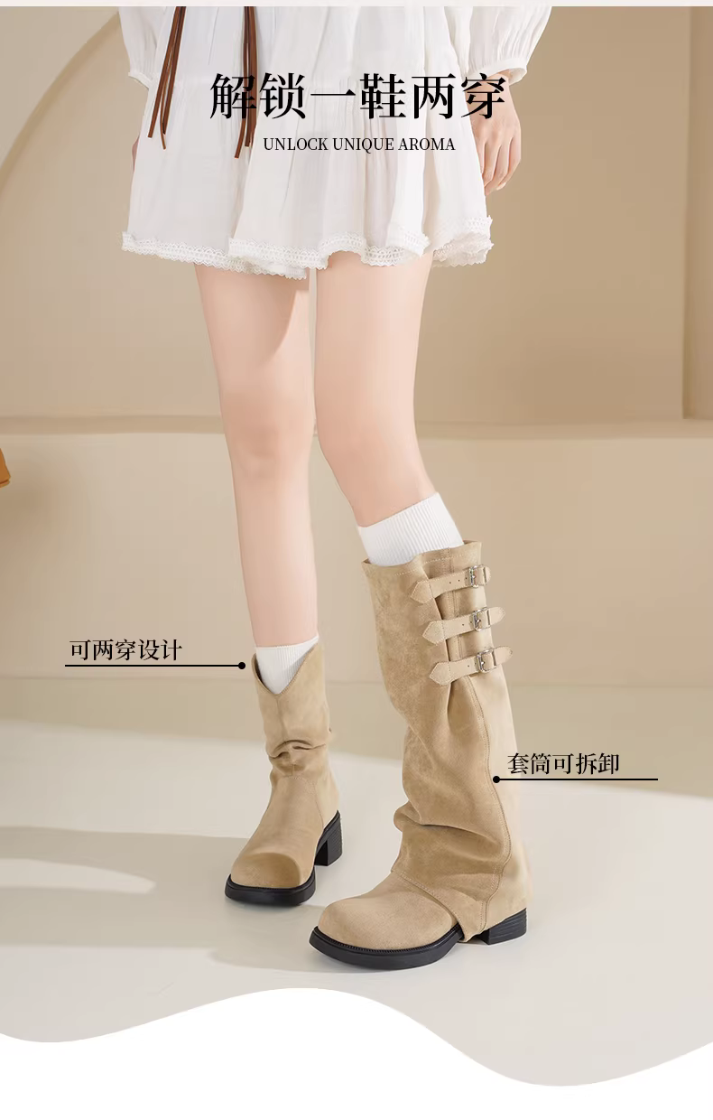 Giày bốt cao cổ đế dày Daphne dành cho nữ, mẫu mới thu đông 2025, kiểu cổ điển, đi xe, kiểu lười, bốt cao hai chiều dành cho nữ
