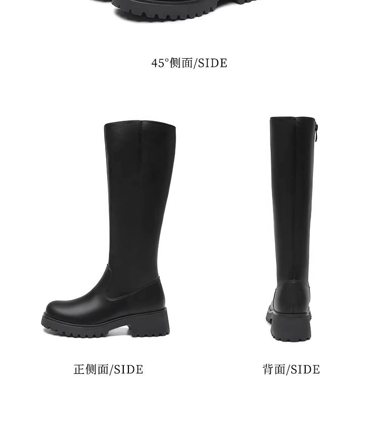 - Giày bốt cao cổ đế dày gót thô Dadong dành cho nữ, mẫu mới thu đông 2025, màu đen, kiểu dáng cao cổ, thích hợp cho người thấp.