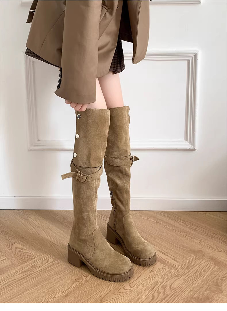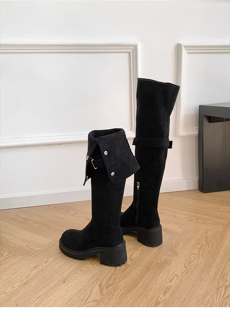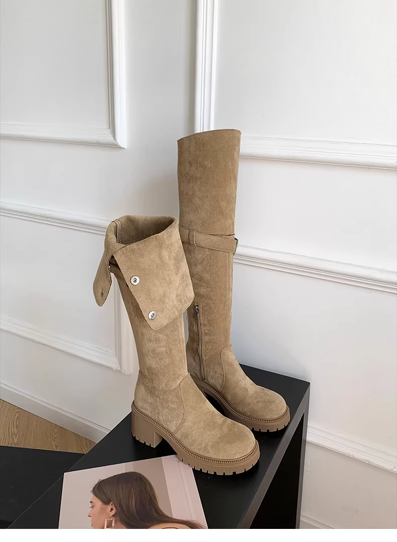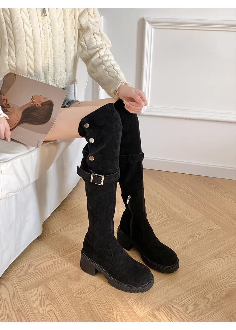 - Giày bốt cao cổ đế dày, kiểu dáng retro, tôn dáng, dành cho nữ, mùa thu đông 2025, size lớn, đế dày