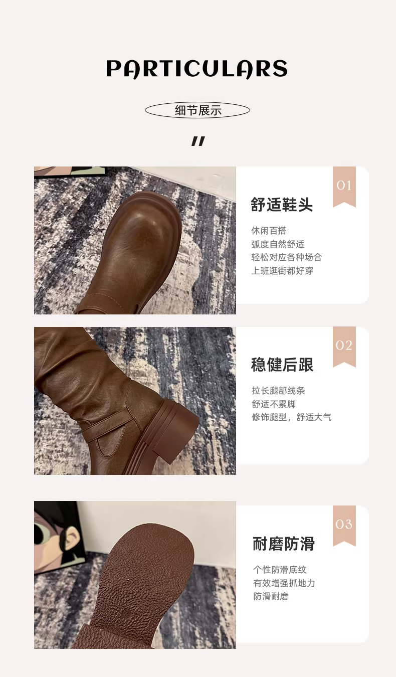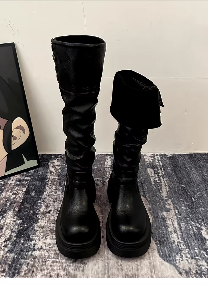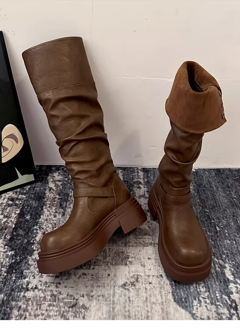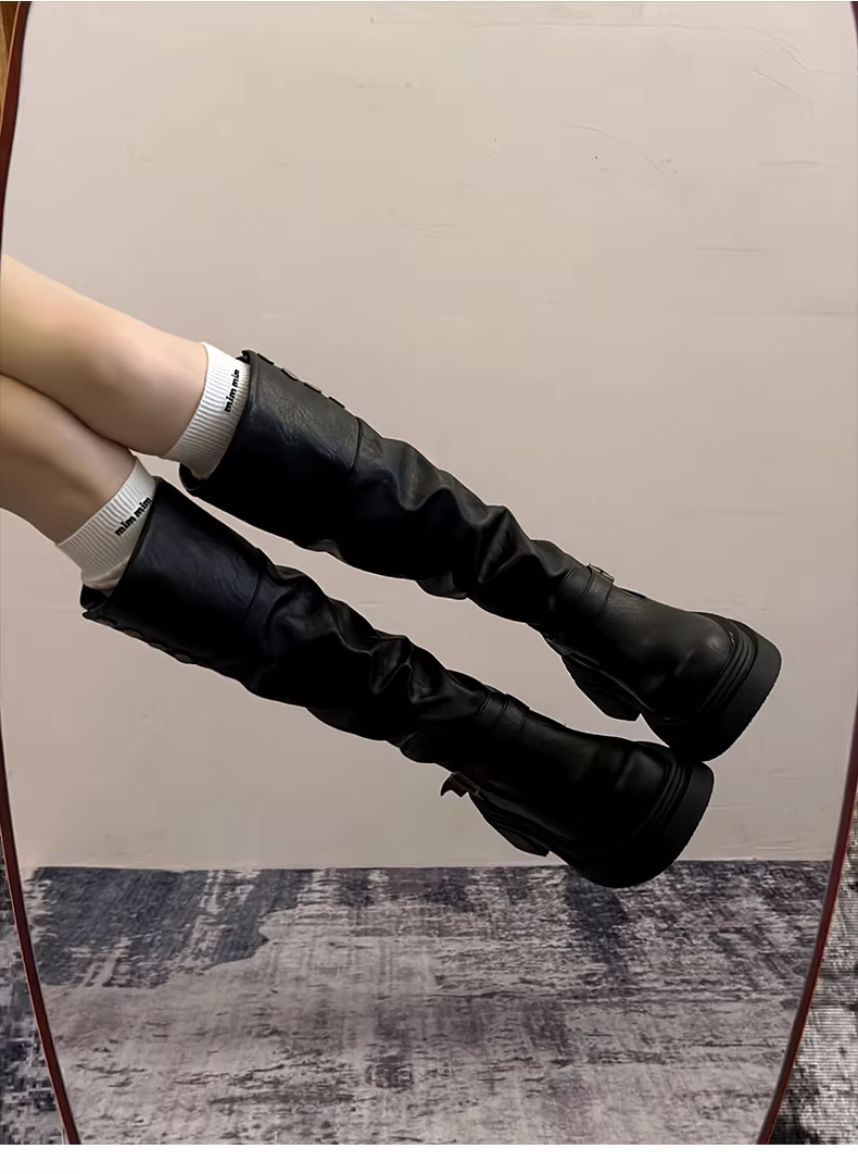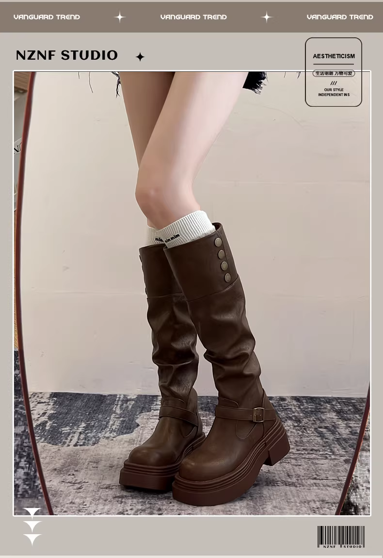 - Giày bốt cao cổ đế dày kiểu Mỹ cổ điển dành cho nữ, mẫu mới thu đông 2025, kiểu dáng thon gọn, trên gối, kiểu cưỡi ngựa