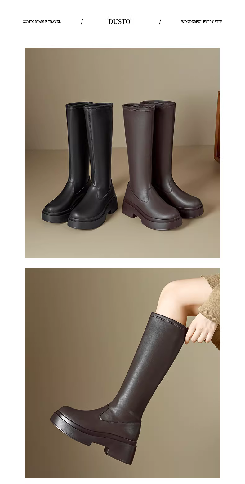- Giày bốt cao cổ đế dày màu đen Dadong dành cho nữ, mẫu mới thu đông 2025, kiểu dáng nhỏ nhắn, tôn dáng, cao cổ, kiểu đi cưỡi ngựa