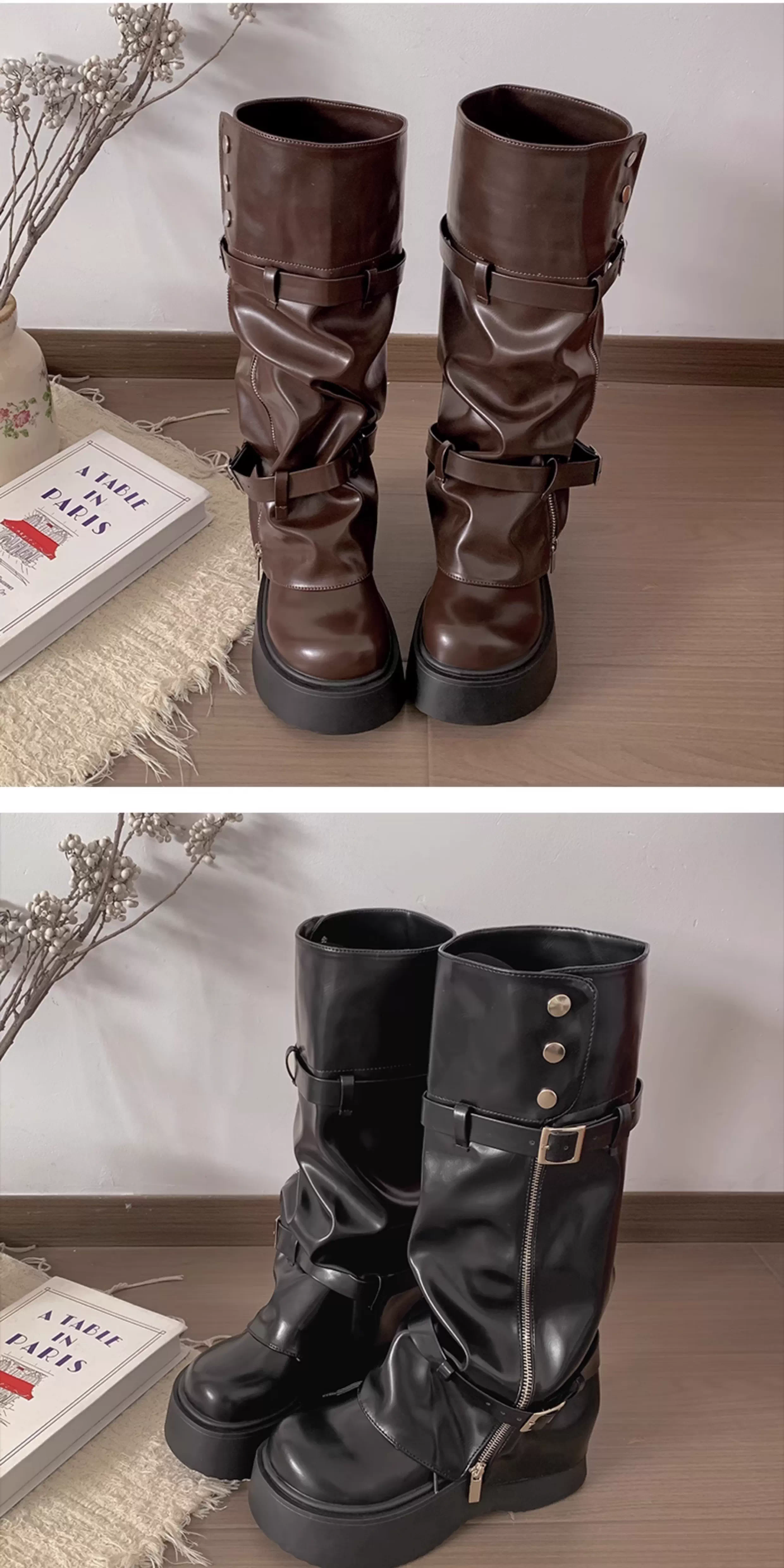 - Giày bốt cao cổ đế dày phong cách retro Anh quốc màu đen dành cho nữ, mẫu mới thu đông 2025, đa năng, phối chân váy giúp tăng chiều cao.