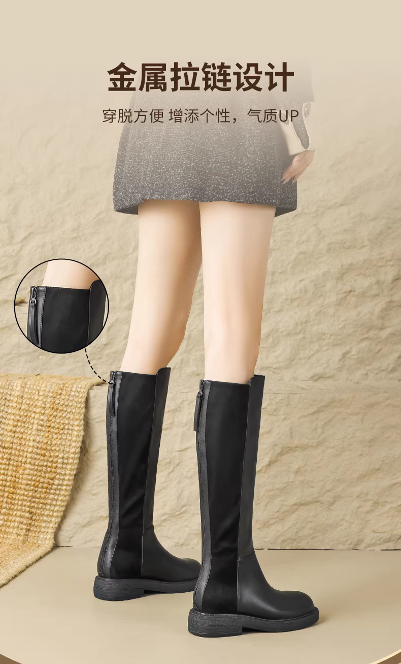 - Giày bốt cao cổ đen Daphne dành cho nữ, mùa thu đông, lót lông cừu, kiểu mới 2025, bốt cao cổ đế bằng, bốt cưỡi ngựa dáng ôm.