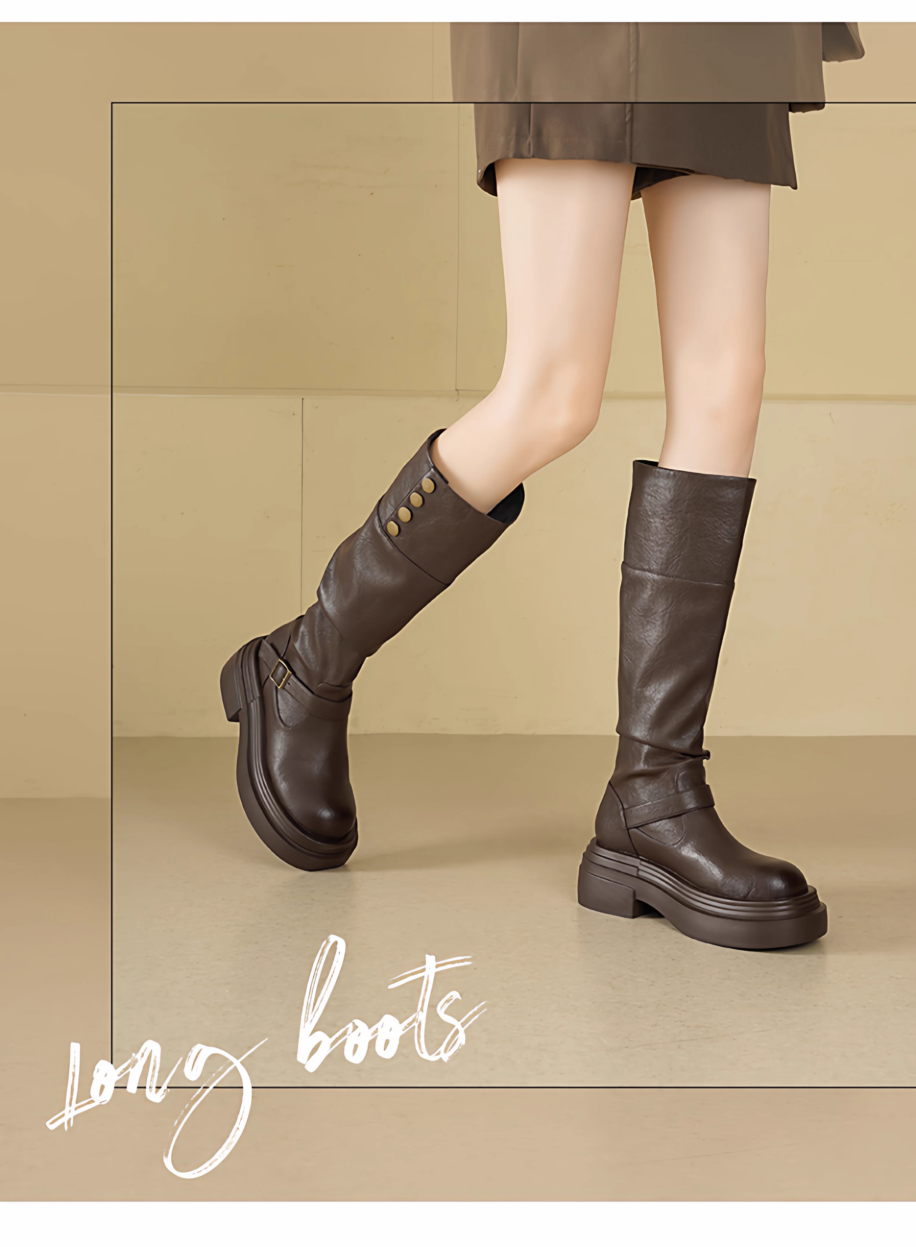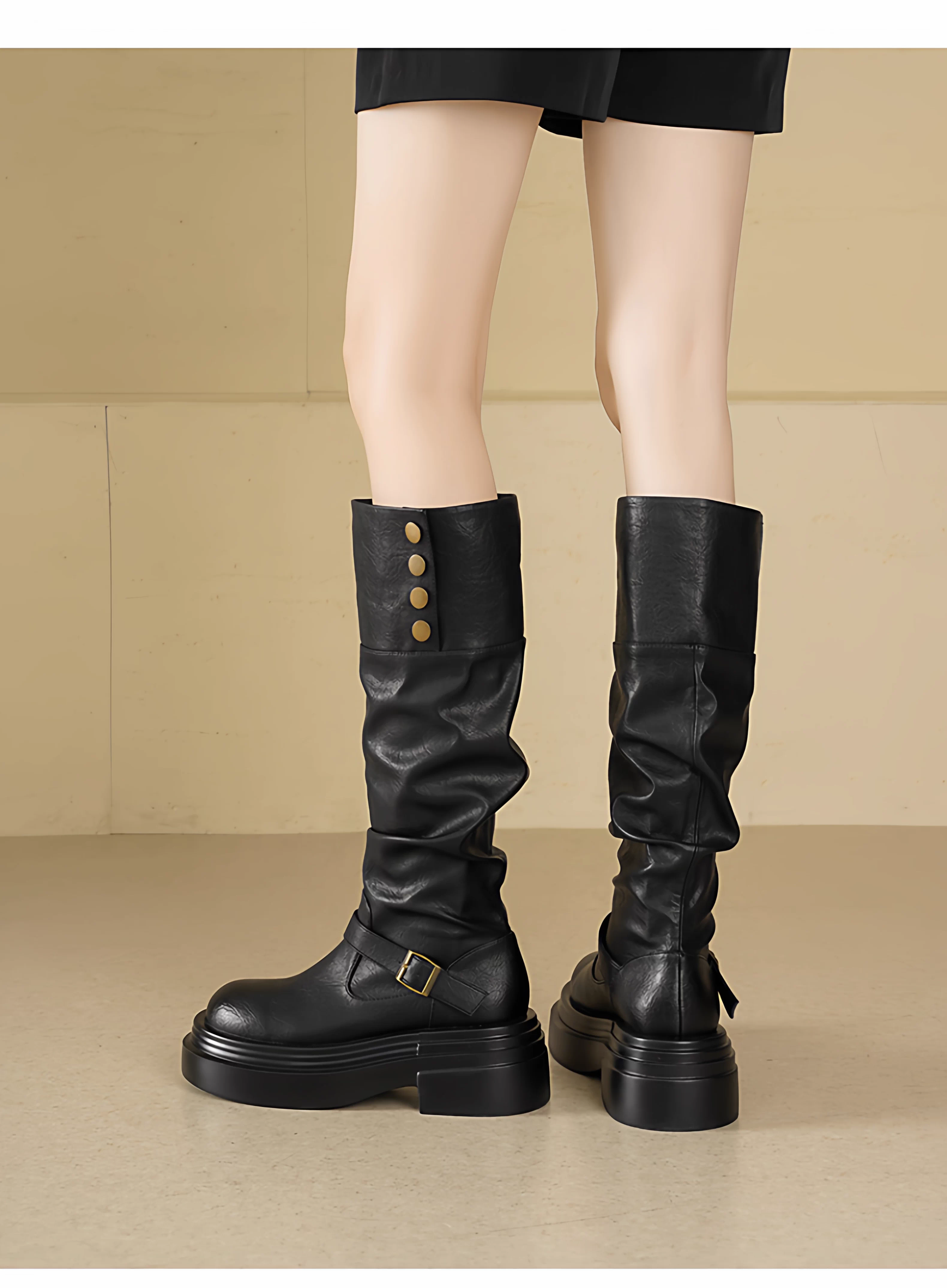 - Giày bốt cao cổ nữ Daphne hai kiểu phối, mùa thu đông 2025, đế dày, tăng chiều cao, kiểu dáng phương Tây, bốt cao cổ đi xe, bốt lười